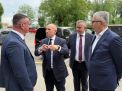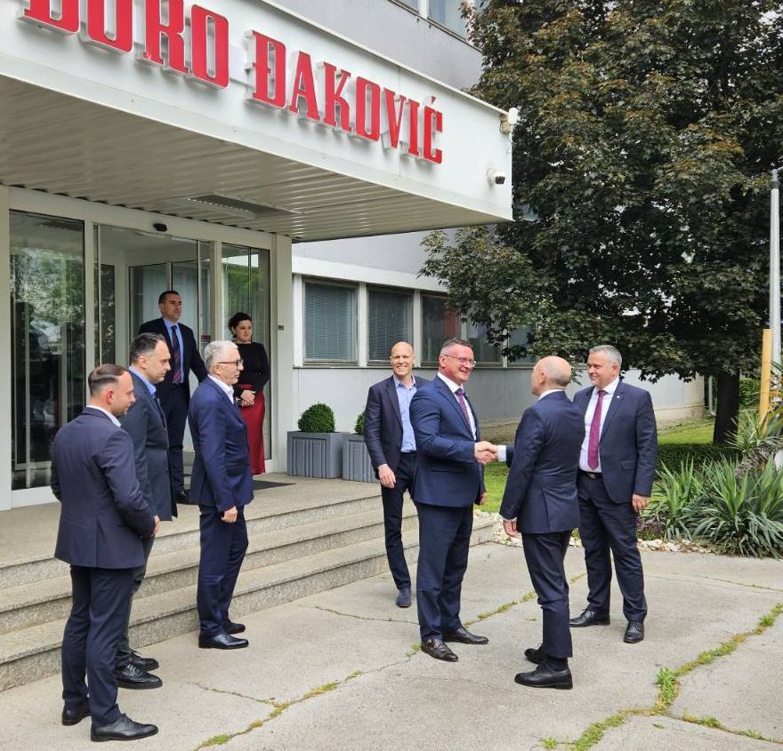 U Slavonski Brod, točnije u Đuro Đaković Grupu, stigao je danas (srijeda, 7. svibnja) Manfred Pentz, ministar za savezne i europske poslove, međunarodne poslove i debirokratizaciju u njemačkoj saveznoj pokrajini Hessen. Dočekali su ga predsjednik Uprave ĐĐ Grupe Marko Ćosić, brodsko posavski župan Danijel Marušić, njegov zamjenik Marko Šimić te saborski zastupnik i dosadašnji predsjednik Županijske skupštine Brodsko-posavske županije Pero Ćosić.