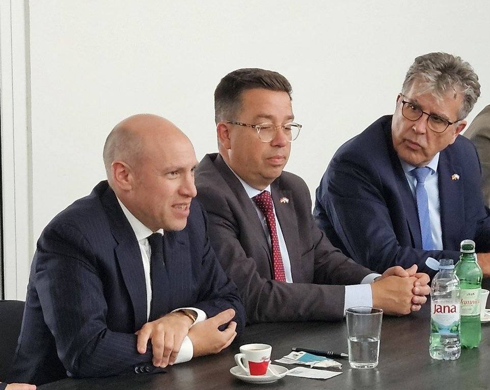Tema razgovora na sastanku bila je nastavak suradnje njemačkih s tvrtkama Đuro Đaković Grupe, čiji je predsjednik Marko Ćosić uvaženog gosta iz Njemačke upoznao s aktualnim ustrojstvom i poslovima, a potom su posjetili i proizvodne pogone s naglaskom na vojni program. Ministar Pentz upravo je pitanje obrane izdvojio kao jedno od ključnih pitanja te iskazao zadovoljstvo svime viđenim u Slavonskom Brodu. Odao je i počast poginulim hrvatskim braniteljima, radnicima Đure Đakovića.