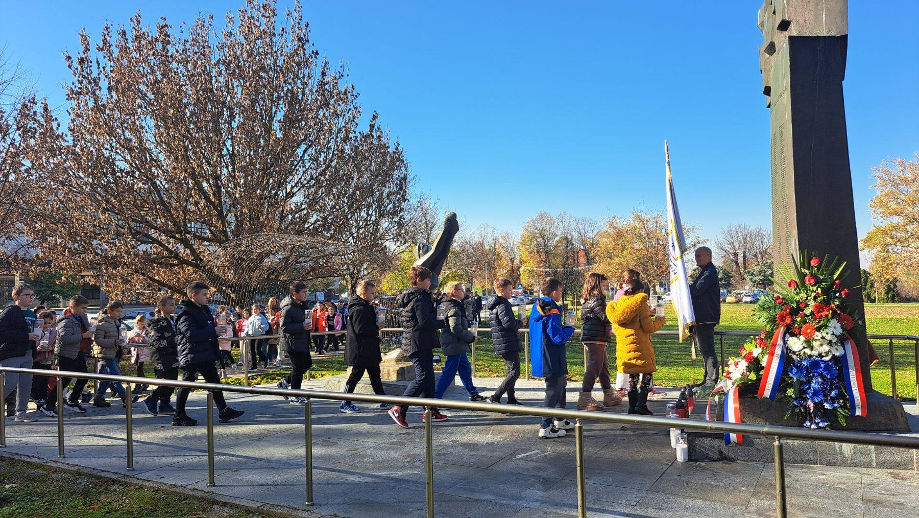 Nakon što su brojna izaslanstva položila vijence, cvijeće i svijeće pred spomenikom Djevojčica, svi su, predvođeni brodskim školarcima, u koloni sjećanja pošli u centar pred Spomenik poginulim hrvatskim braniteljima i svima njima i ondje odali dužnu počast i molili za njihove duše.