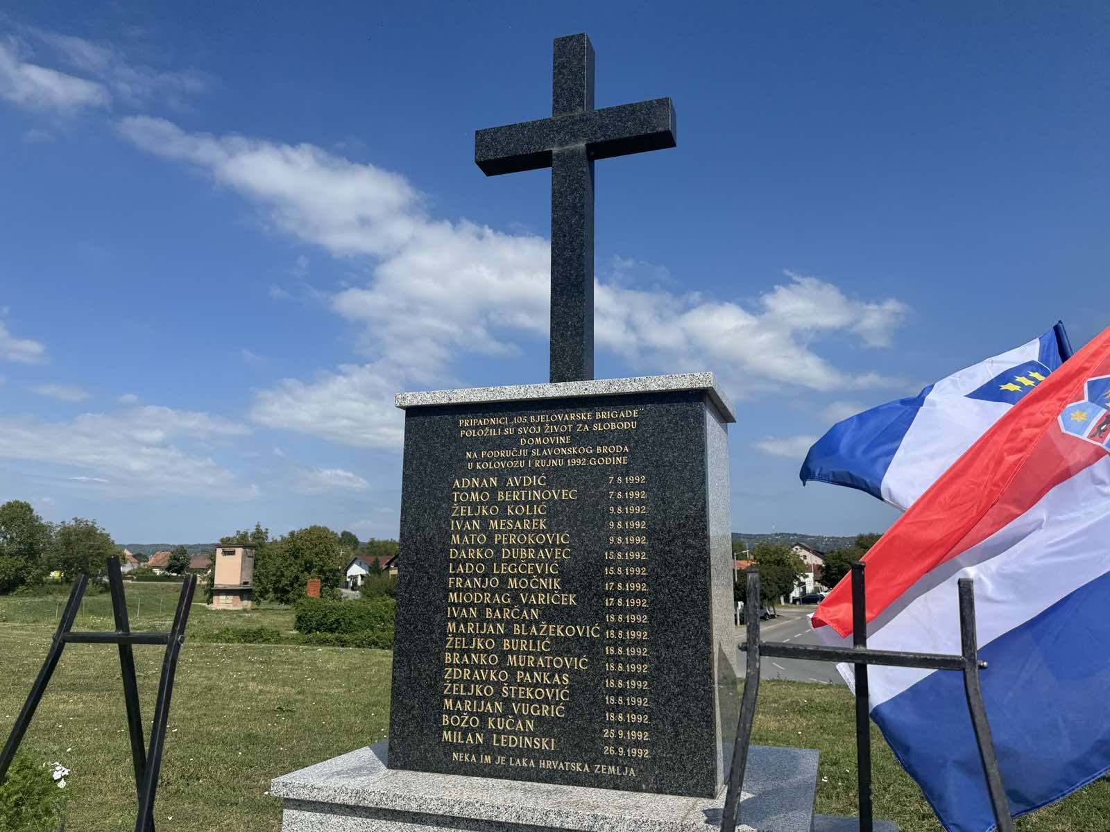 Svečanom komemoracijom kod spomenika poginulim braniteljima u Ulici Stjepana Radića u Slavonskom Brodu obilježena je 33. obljetnica pogibije bjelovarskih branitelja. Naime, u obrani hrvatske granice na rijeci Savi 1992. godine tijekom kolovoza i rujna 18 pripadnika 105. bjelovarske brigade izgubilo je svoje živote.