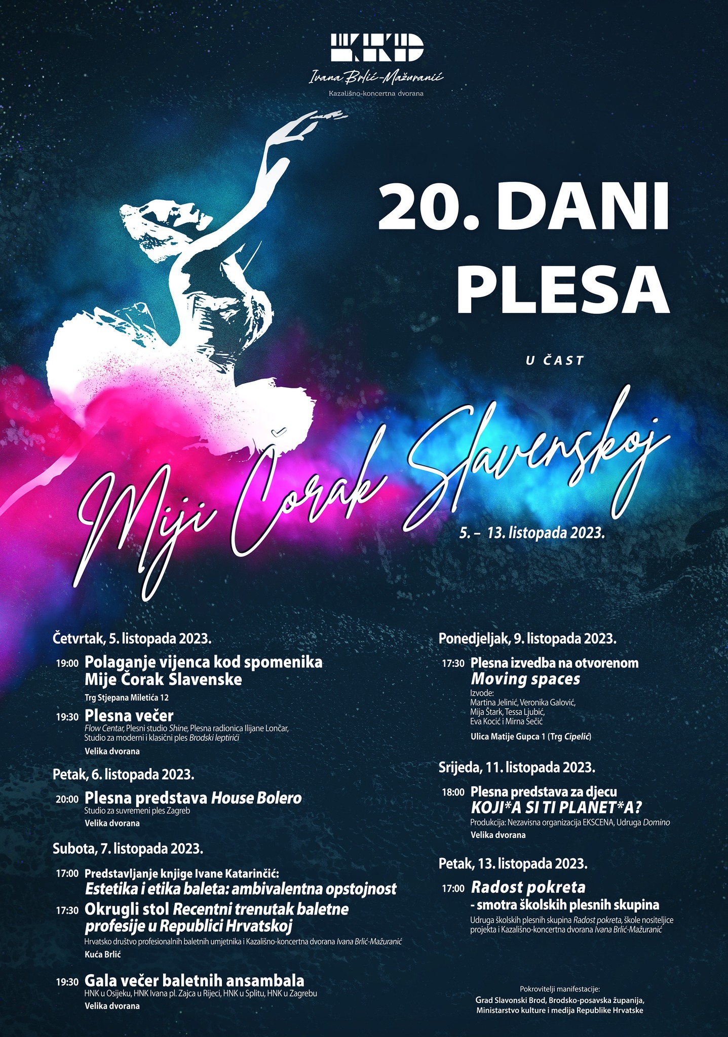 Dani plesa u čast Mije Čorak Slavenske završavaju 13. listopada 2023. godine smotrom školskih plesnih skupina, a detaljan program donosimo u nastavku.
