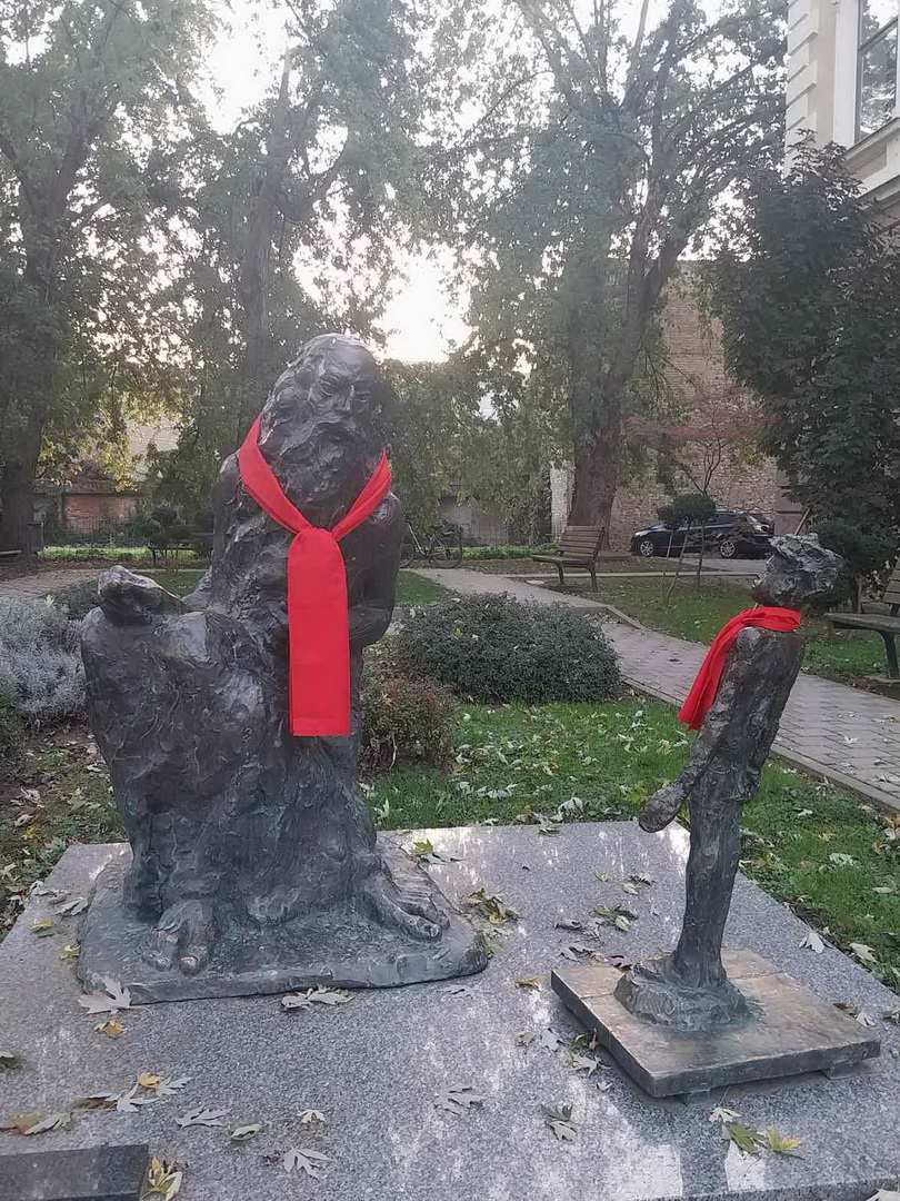Prigodom današnjeg obilježavanja Međunarodnog dana kravate, spomenici „Hlapića", „Potjeha", „Relje", „Toporka", „Djeda Neumiljka", „Oca i sina" u Ulici Petra Krešimira IV. te Ivane Brlić-Mažuranić, Mije Čorak Slavenske i Ante Starčevića, jutros su osvanuli u kravatama.