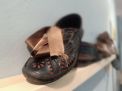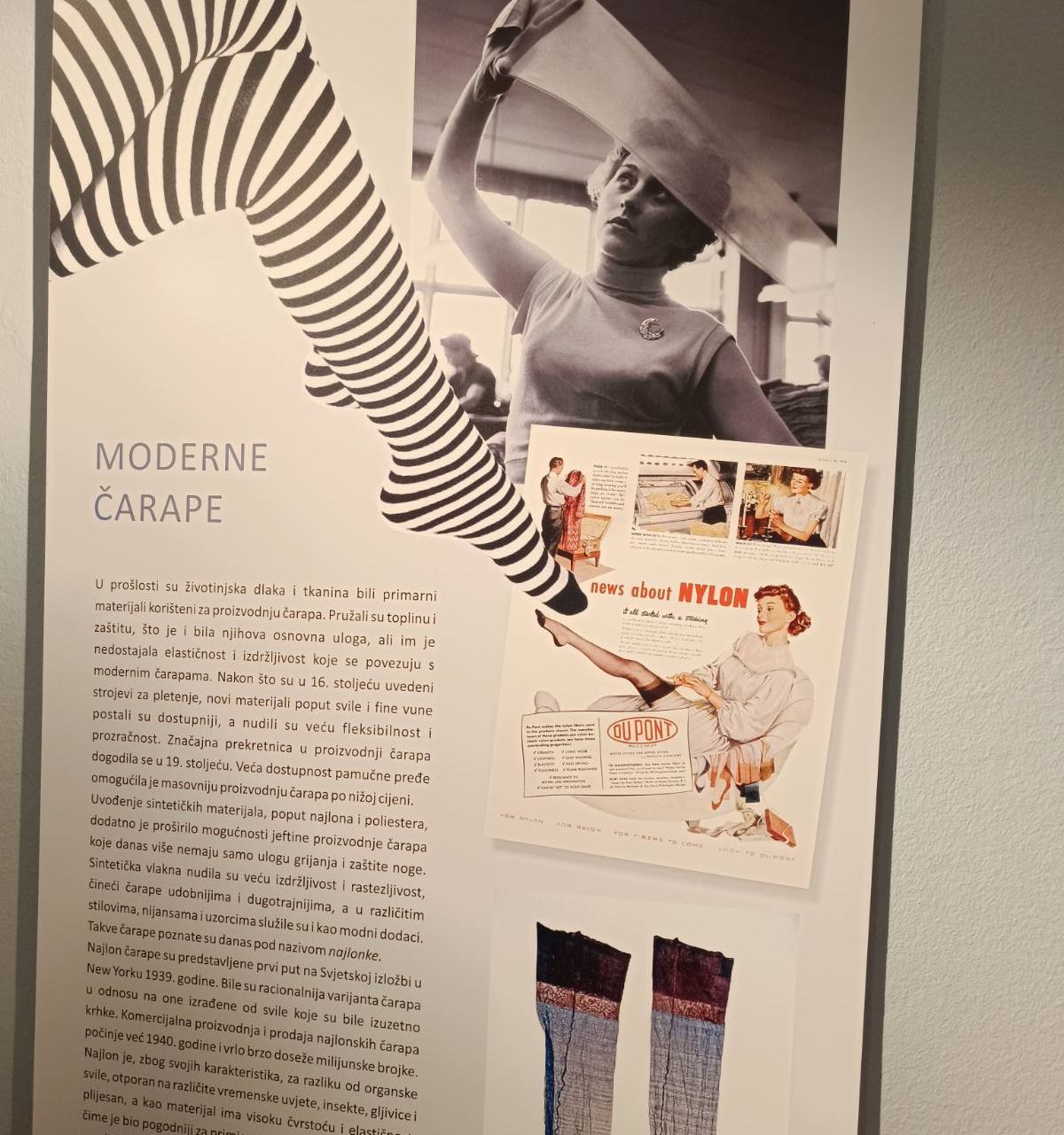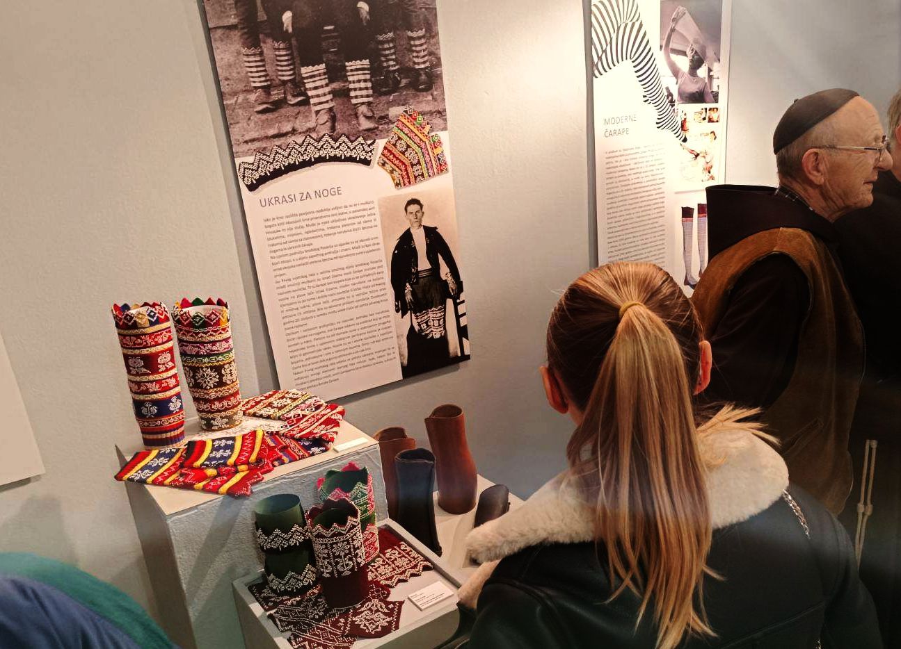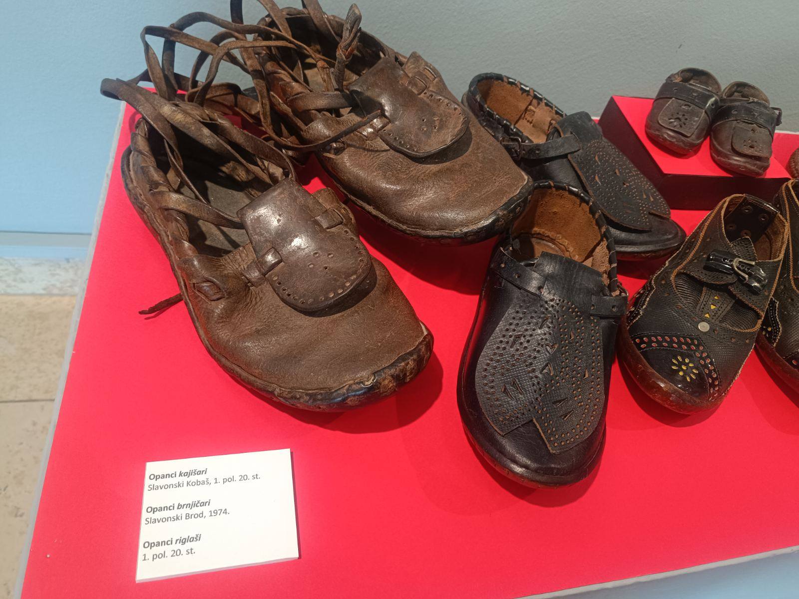 "Na ovoj smo izložbi predstavili 210 eksponata - čarapa, opanaka, obojaka, štucni, lački, papuča, počni...znači sve ono što od obuće imamo u zbirci narodnih nošnji u Etnografskom odjelu Muzeja, a ima i nešto predmeta posuđenih iz našeg muzejskog kulturno-povijesnog odjela, od kolega etnografa Muzeja u Županji ali i od građana koji su nam posudili nekoliko čarapa, opanaka i fotografije za potrebe izložbenog kataloga", ispričala je autorica izložbe Karolina Lukač, koja je odlučila učiniti nešto slično što je prije 52 godine bio učinio njezin prethodnik, tadašnji voditelj Etnografskog odjela Muzeja prof. Zvonimir Toldi, koji je davne 1972. bio izložio povijesnu obuću kao sastavni dio tradicijske narodne nošnje.