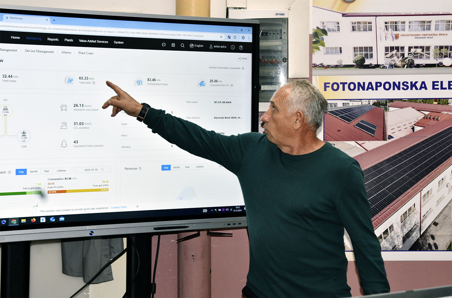 Ovaj samoodrživi fotonaponski sustav snage 40kW proizvodi električnu energiju za potrebe škole, čime su smanjena vršna opterećenja i potrošnja električne energije pogona, a time osigurana ušteda po jedinici isporučenog proizvoda za minimalno 83%. Ujedno ova elektrana rasterećuje lokalnu trafostanicu kod dnevnih preopterećenja sustava korisnika, a proizvedena energija može biti utrošena lokalno. U pogledu smanjenja onečišćenja emisije CO2 u okolinu smanjena je za oko 19,691CO2 eq godišnje.