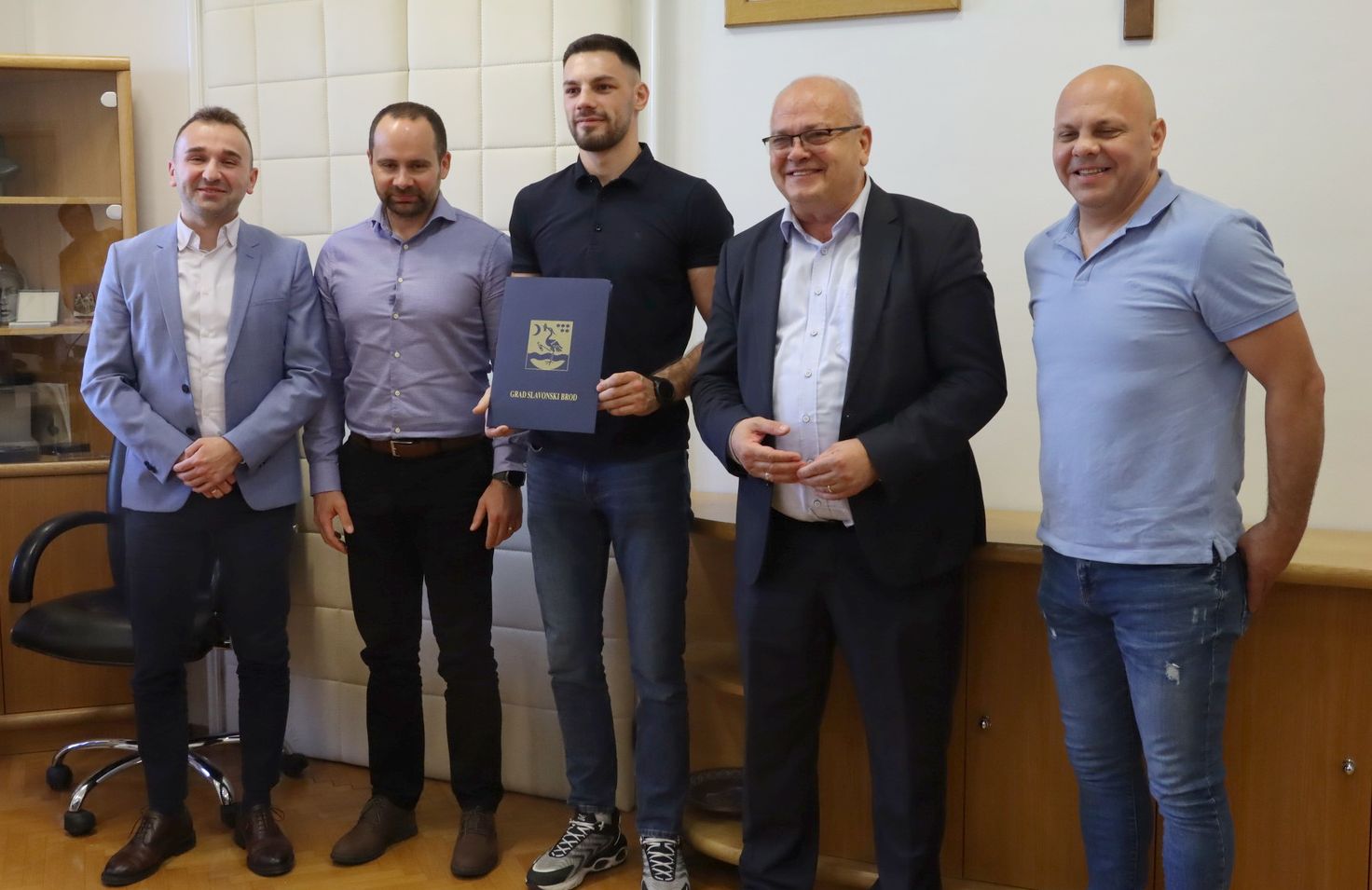 Gradonačelnik Mirko Duspara ugostio je europskog boksačkog prvaka Brođanina Gabrijela Veočića (22).