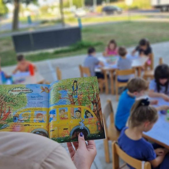 Povodom godine dana uspješnog projekta „Putuj s knjigom“, jučer je na autobusnom kolodvoru održana zanimljiva radionica namijenjena djeci od 6 do 10 godina. Sva mjesta za radionicu na otvorenom bila su popunjena, a mališani su pod vodstvom Mateje Žilić proveli dan uz veselje, smijeh i dobru zabavu.