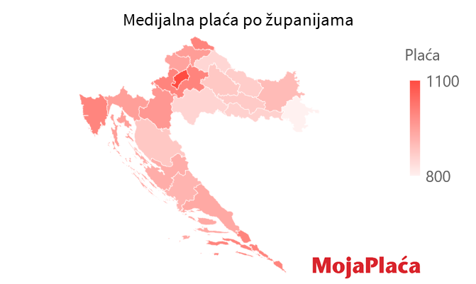 Najniže plaće i dalje su na istoku zemlje: u Požeško-slavonskoj (-21%) te Sisačko-moslavačkoj (-15%) županiji.