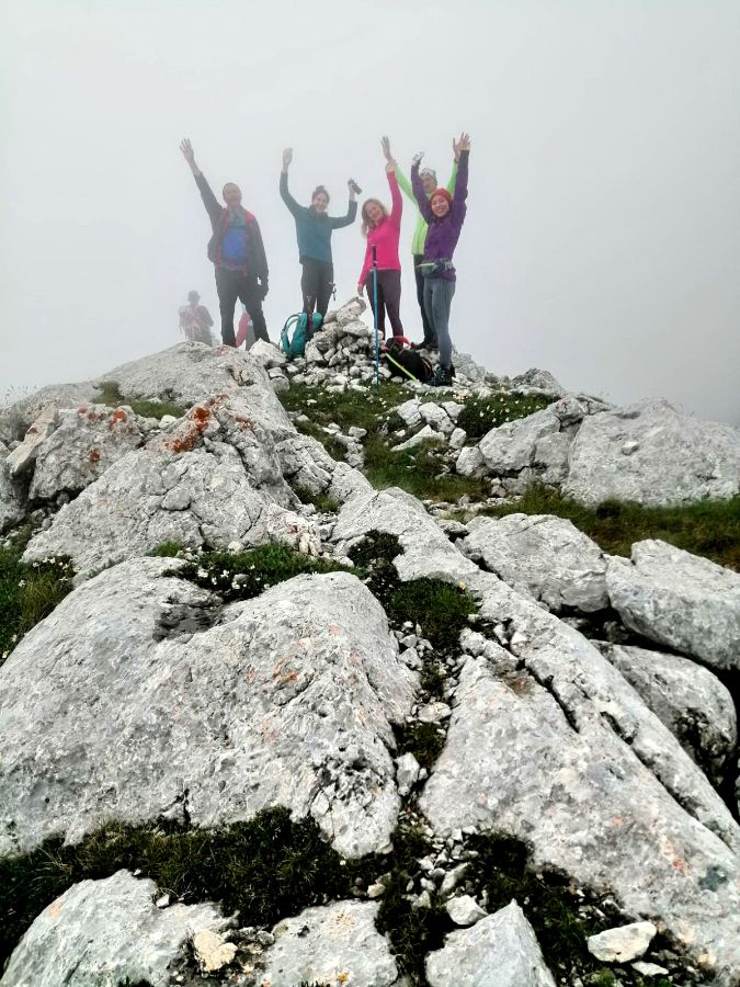 Nakon 5 sati mukotrpnog penjanja, proklizavanja i prelaženja ledenih prepreka, konačno su stigli na vrh. Raspoloženje je bilo sjajno......bili su puni radosti i veselja, grli su se međusobno, kamerom hvatali svaki trenutak ovog događaja i prekrasne poglede na obližnje vrhove. Za kraj prije silaska napravili su zajedničku fotografiju, koja govori sama za sebe i ne treba ju komentirati. Silazak s planine kao i uvijek bio je dugotrajan i mukotrpan, uz dodatan oprez zbog saznanja da 80 % planinara strada prilikom silaska. Hvala Bogu vratili su se svi živi i zdravi na zadovoljstvo organizatora i vodiča ovog izleta.