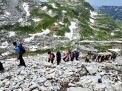 Drugi dan očekivao ih je najteži ispit, a to je bio visokogorski uspon na Bobotov kuk. Planinu diva, na koju je priroda posložila 48 impozantnih vrhova s preko 2000 mnv, a između njih utkala brojna ledenjačka, kristalno čista jezera, predivne smaragdno zelene boje. Do podnožja planine stigli su autobusom, dok su ostatak morali savladati vlastitim nogama. Na pohod je krenulo njih preko 50 što je zaista velika grupa, na što je vodič pokazao veliku skepsu. Skepsa je uskoro razbijena dolaskom do prvih sajli i njihovim brzim savladavanjem cijele grupe. Puni samopouzdanja i optimizma nastavili su prema vrhu, prateći uske planske staze. Kako su se uspinjali vegetacija je pomalo nestajala, a vrh Bobotov kuk postajao je sve vidljiviji. Promatravši ga iz ovog položaja nikako nije bilo jasno, kako je moguć uspon na tako strmu stijenu pod tako oštrim kutem. Vizualni pogled često prevari pa ti se stijena čini nesavladivom, ali kad joj pristupiš otvore ti se neke nove mogućnosti za lakše savladavanje. Onda uz pomoć sajli ili blažeg nagiba stijene, uspijevaš se popeti mic po mic. Obišavši jedno od ledenjačkih jezera, nastavili su strmo do sedla podno vrha, a onda je krenula prava avantura. Ispred njih se pojavio strmi ledenjak, koji su morali prijeći u dužini od stotinjak metara. I ovu prepreku uspješno su savladali uz veliki oprez i strpljenje vodiča. Sve do završnih sajli podno vrha nastavili su prelaziti ostatke snijega te strme i klizave litice, pomažući jedni drugima i bodreći se. Došavši do završnog uspona uz pomoć sajli, bili su svjesni svog uspjeha i da su nadomak vrhu, koji viri odmah iza ugla.
