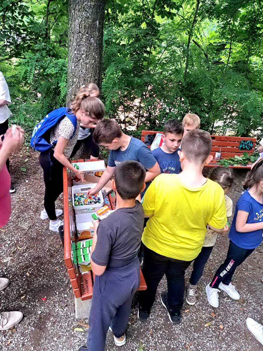 Na kraju su se svi sudionici počastili slatkišima, sokićima i čokoladnim mlijekom. Iza sebe nisu ostavili ni najmanji komadić smeća. Bravo mali Požežani!!!!