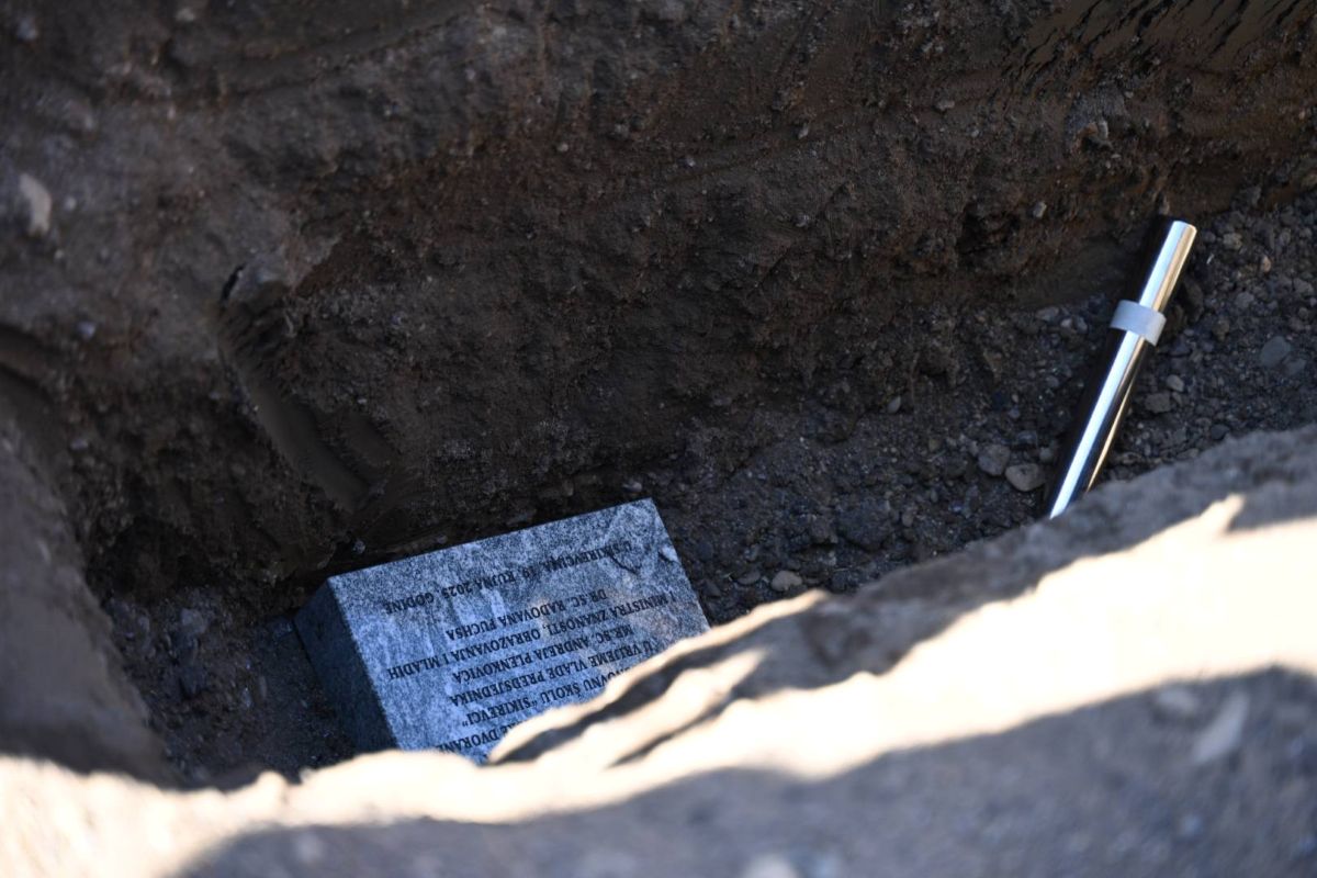 Vremensku kapsulu koja će za buduće generacije sačuvati svjedočanstvo o ovome trenutku, ali i običajima te duhu tradicije ovoga kraja, položili su u mjesto početka gradje učenici Lovro Nikolić i Sofija Ćosić, a kamen temeljac su ugradili ministar Fuchs, čelnici županije te ravnateljica sikirevačke škole, a molitvu blagoslova predvodio je župnik sikirevačke župe sv. Nikole preč. Drago Marković.