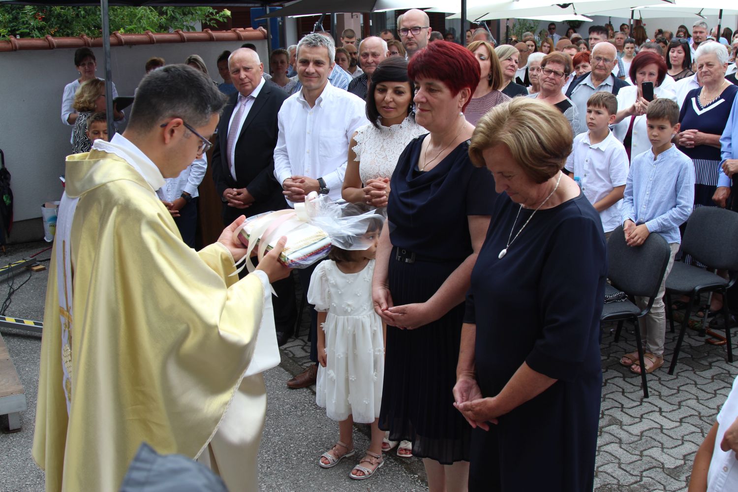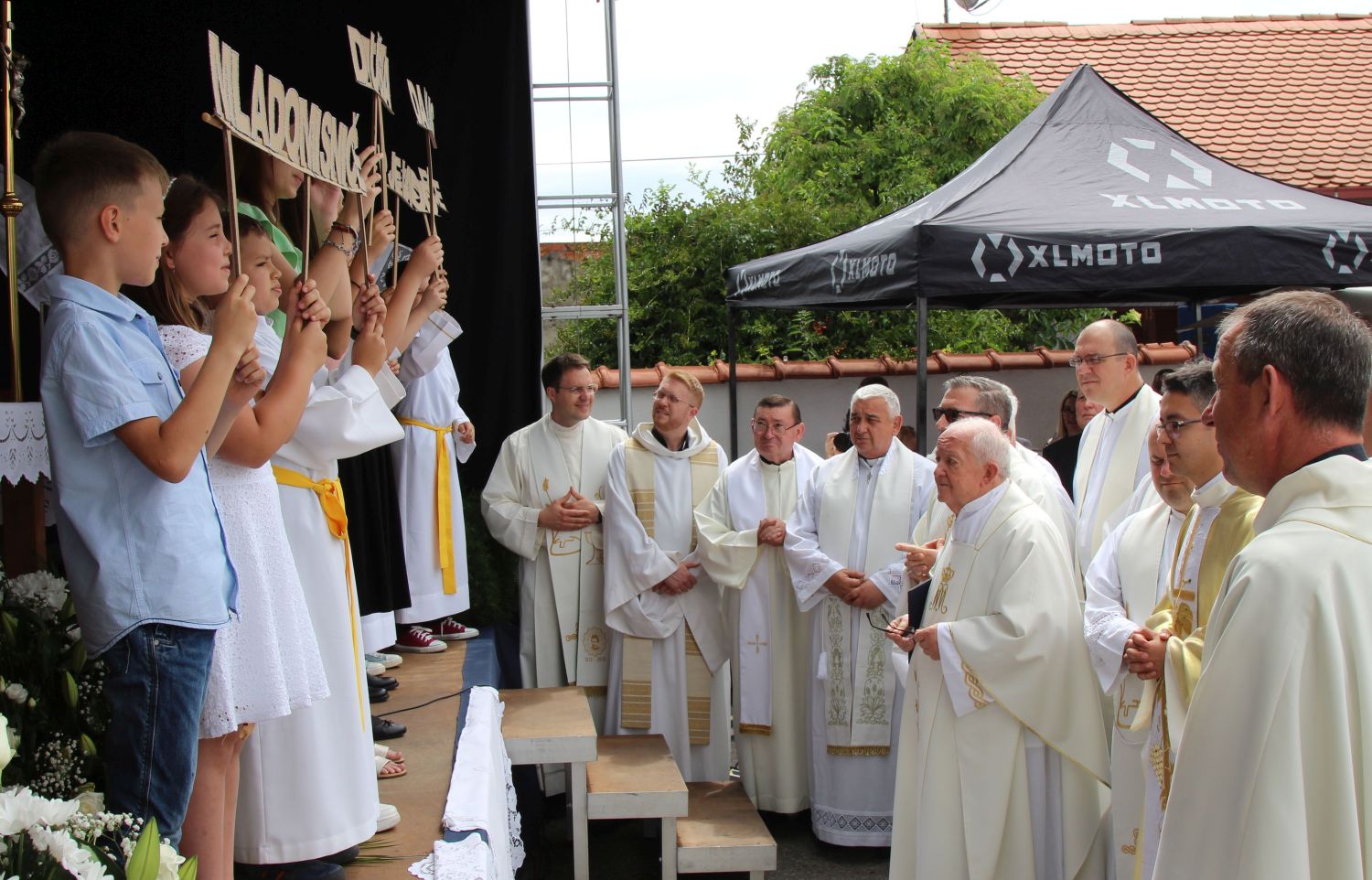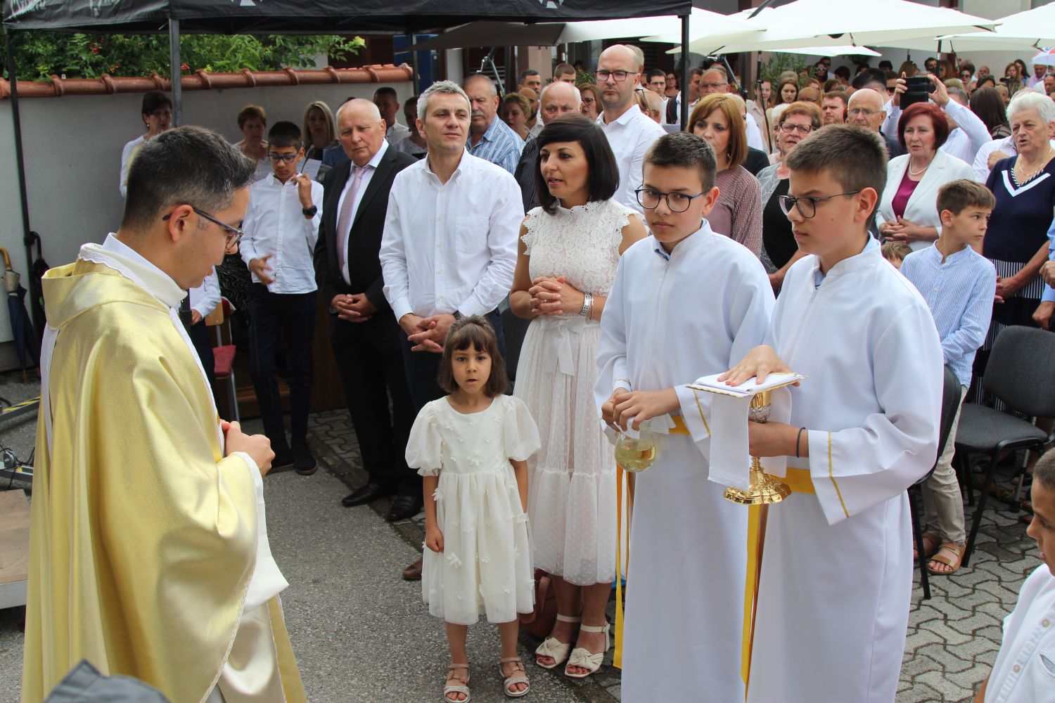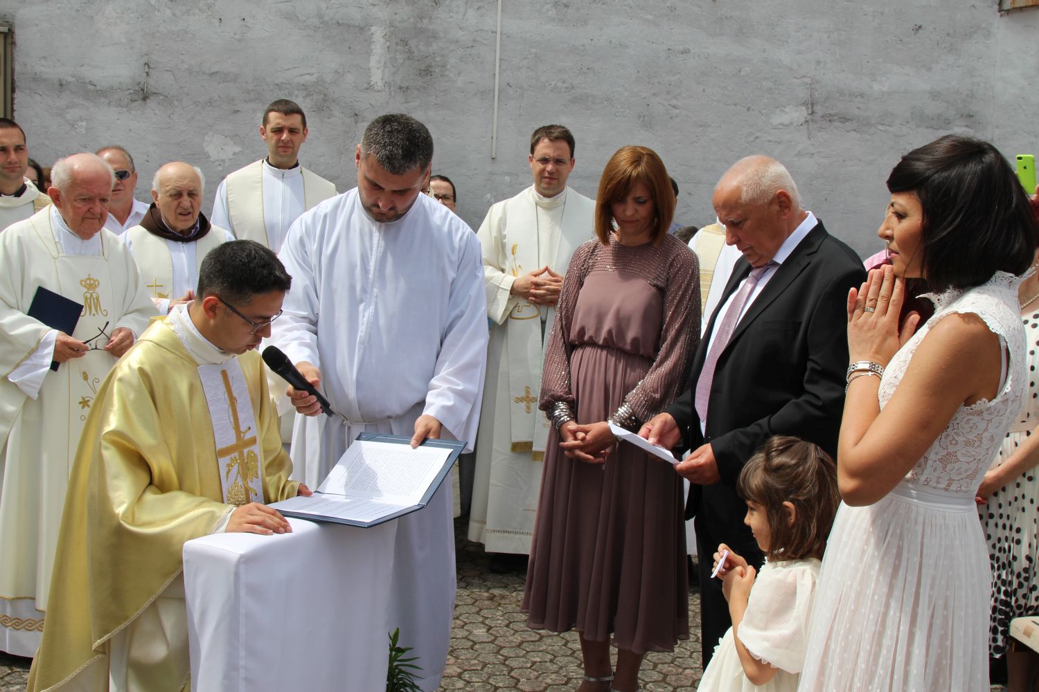 Neposredno prije euharistijskog slavlja Mlade mise, pred vratima župne crkve svome su sinu i bratu don Mislavu blagoslov udijelili njegov otac Marinko, te sestre Nikolina i Gabrijela. Po dolasku pred vanjski oltar, mladomisnika su dočekala djeca s prigodnom recitacijom, te njegov nećak pozdravnim govorom, a potom mu je dobrodošlicu uputio i župnik vlč. Čutura.