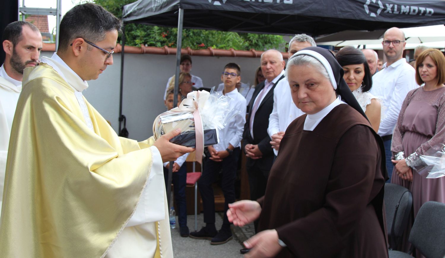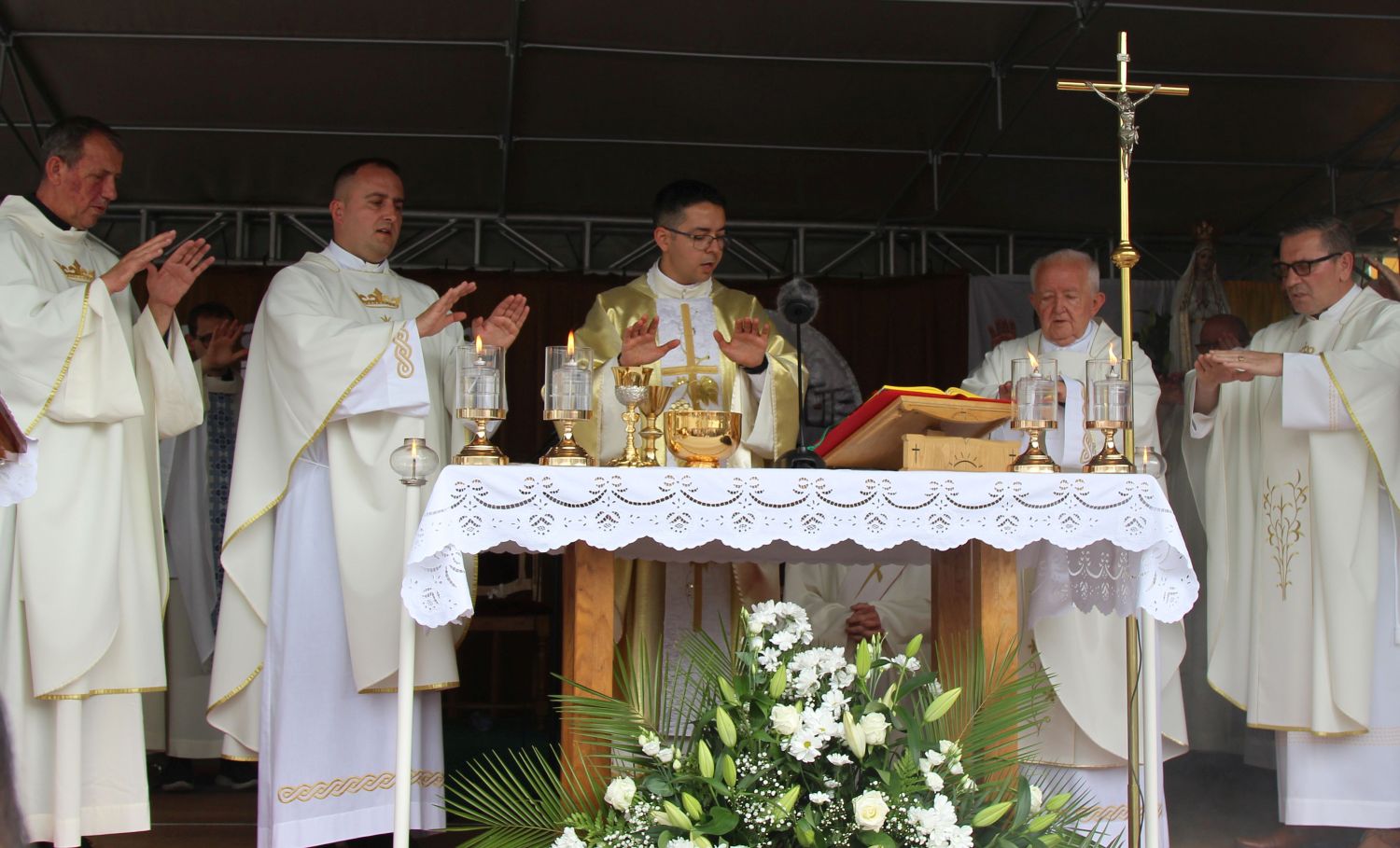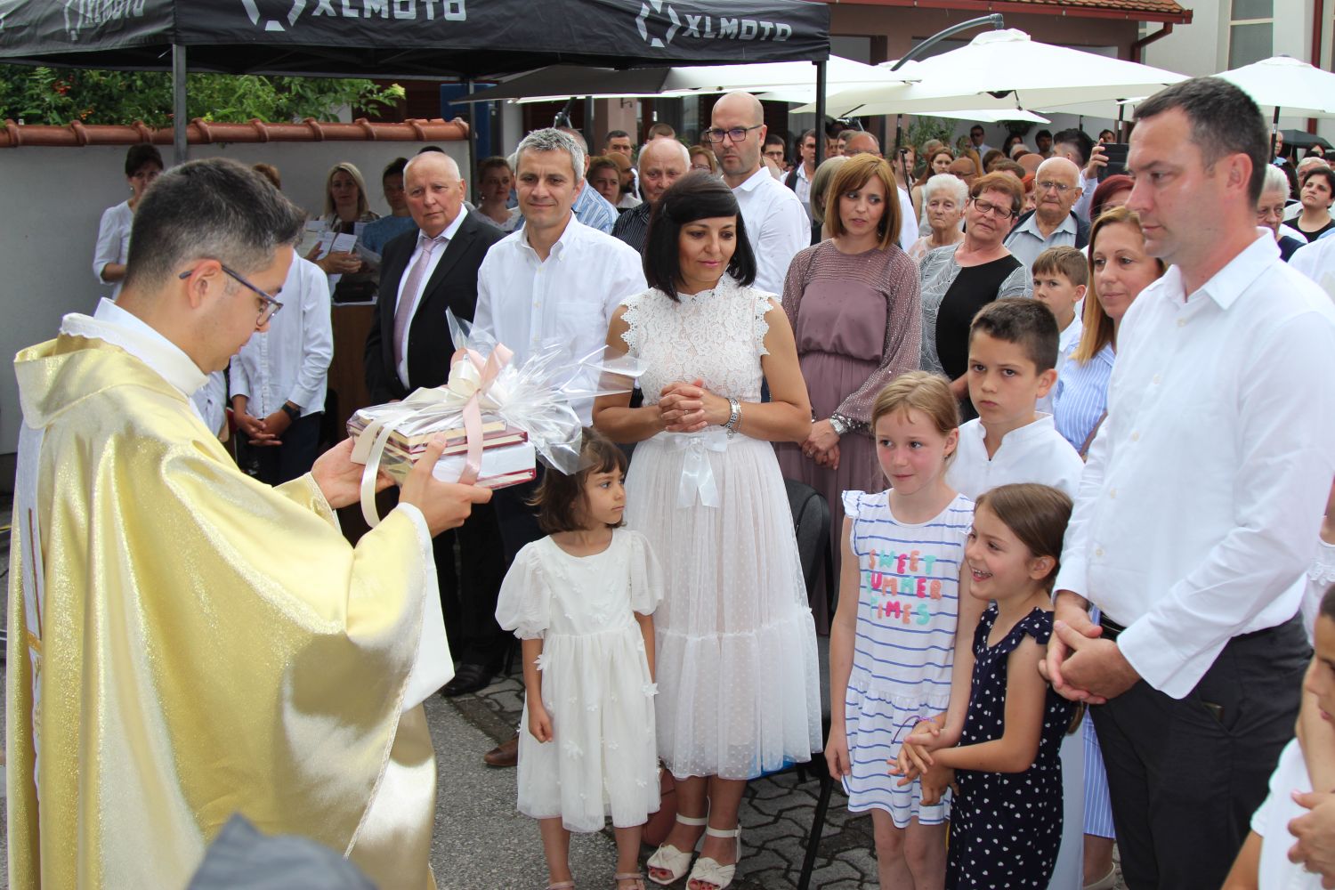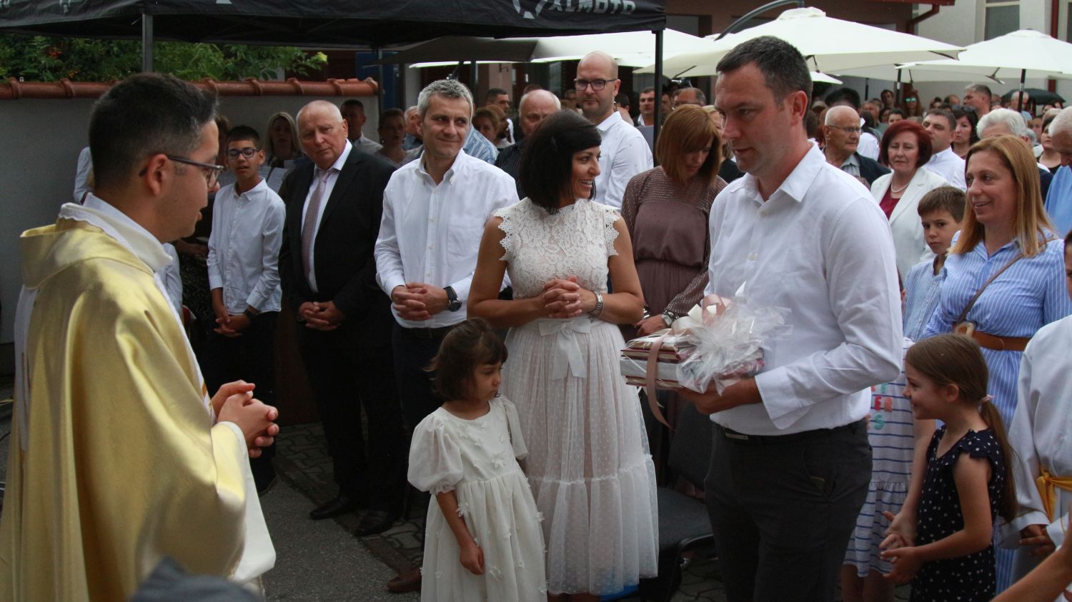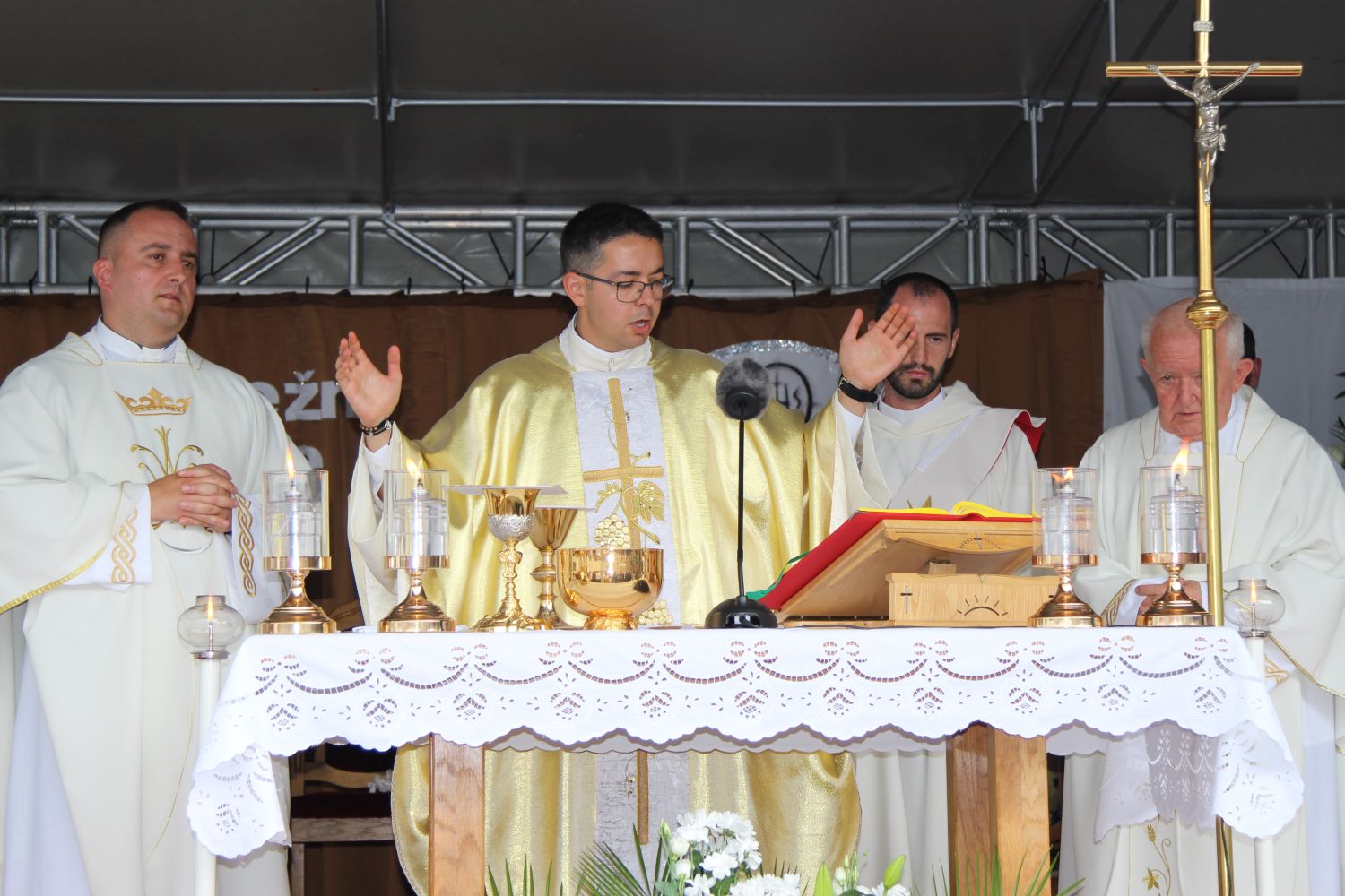 Neposredno prije euharistijskog slavlja Mlade mise, pred vratima župne crkve svome su sinu i bratu don Mislavu blagoslov udijelili njegov otac Marinko, te sestre Nikolina i Gabrijela. Po dolasku pred vanjski oltar, mladomisnika su dočekala djeca s prigodnom recitacijom, te njegov nećak pozdravnim govorom, a potom mu je dobrodošlicu uputio i župnik vlč. Čutura.