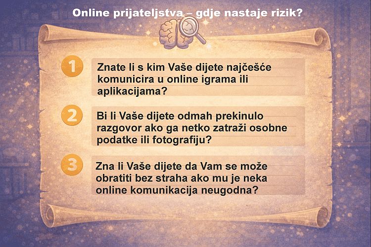 On je moj prijatelj, igramo zajedno svaki dan. Rečenica koja mnogim roditeljima zvuči poznato. Dijete govori o nekome koga nikada niste upoznali, nikada vidjeli, a možda ni ne znate pravo ime te osobe. Za dijete je to stvarno prijateljstvo. Za roditelja – nepoznanica. Online svijet promijenio je način na koji djeca stvaraju odnose. Prijatelj više ne mora biti dijete iz razreda ili susjedstva. Može biti netko iz drugog grada, druge države ili netko tko uopće nije dijete. Upravo tu počinje pitanje koje si roditelji moraju postaviti: znamo li zaista tko je s druge strane ekrana?