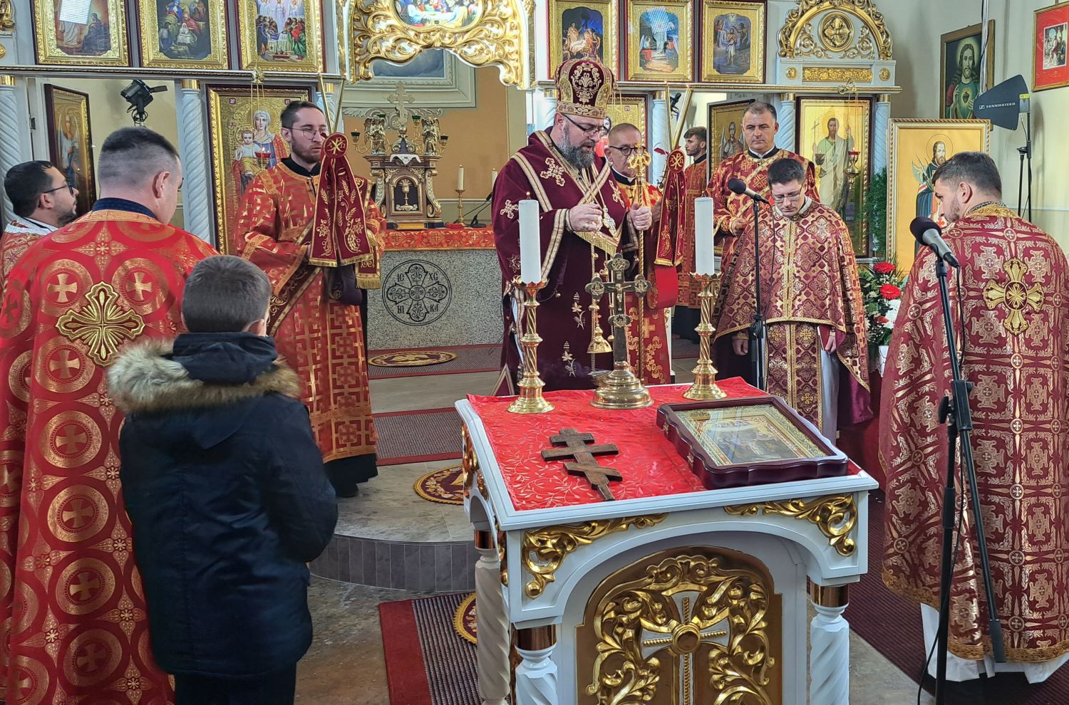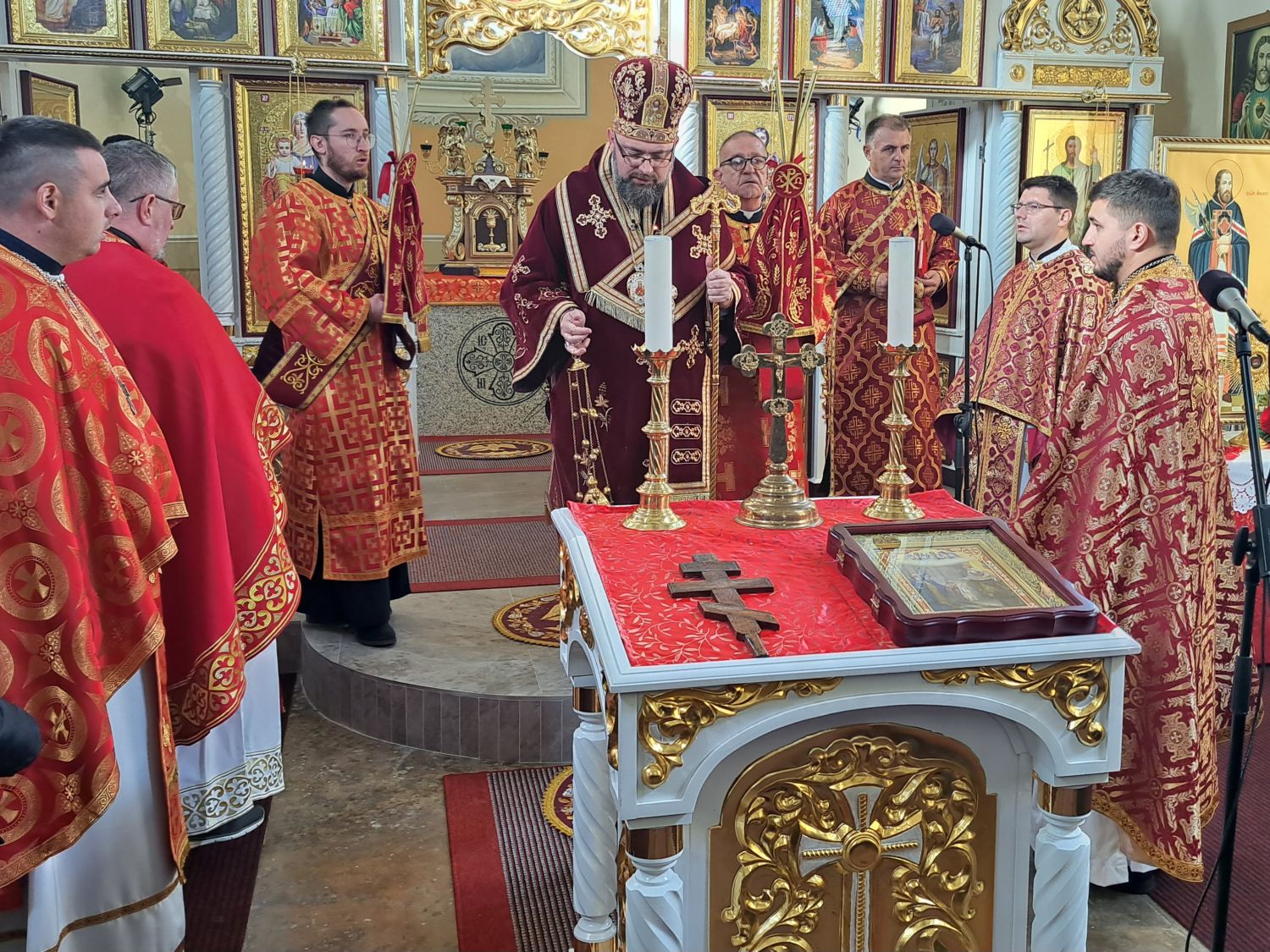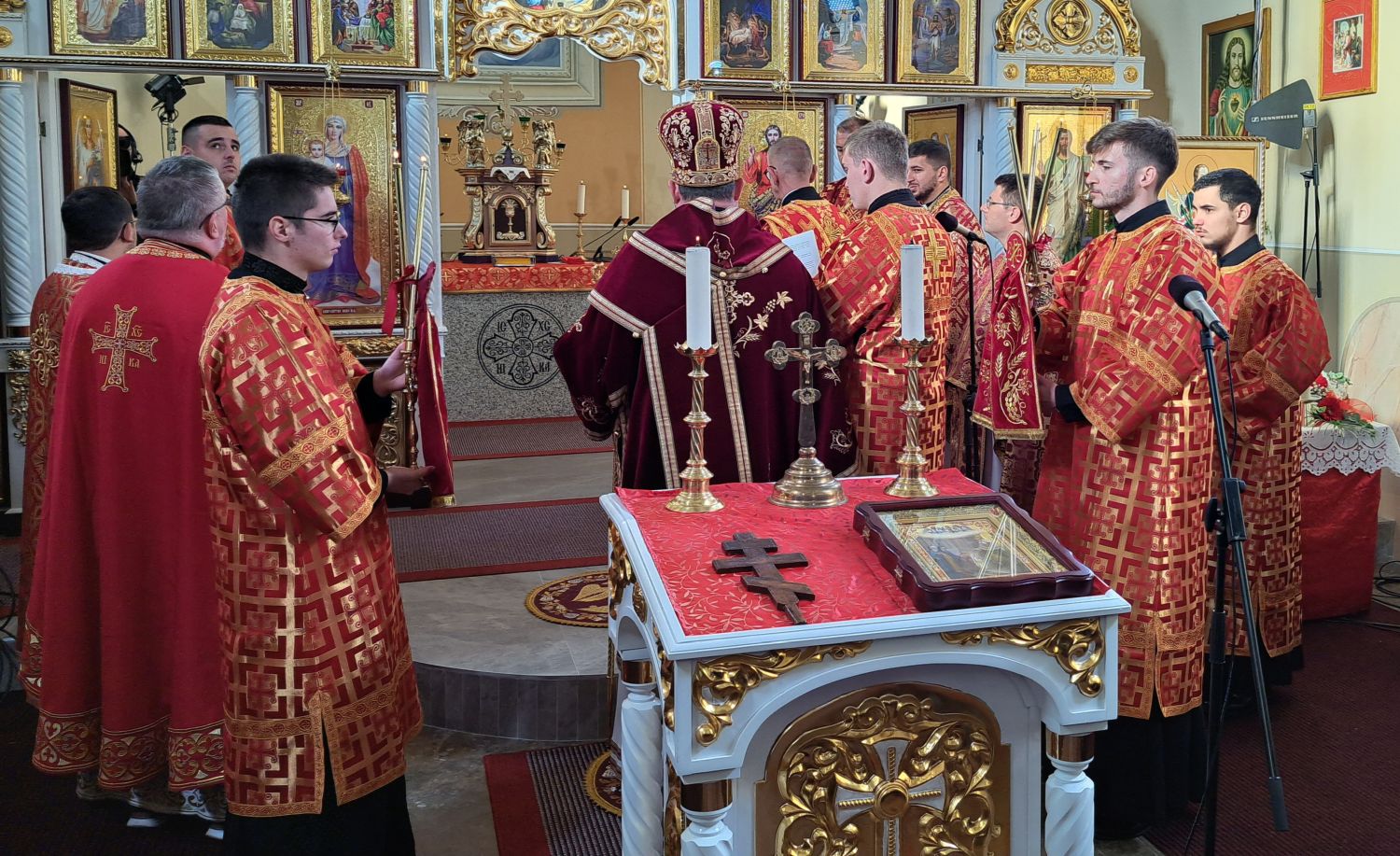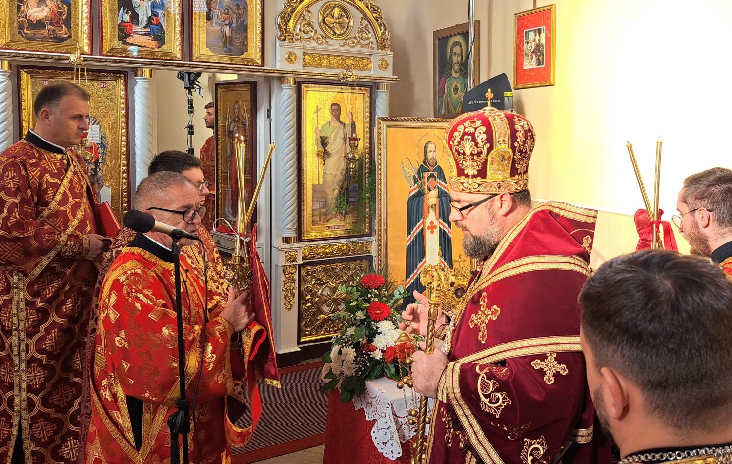 Svečanu liturgiju predvodio je vladika križevački Milan Stipić. Uz njega su za oltarom bili župnik župe Kaniža i upravitelj župe Šumeće o. Andriy Luchyn, slavonskobrodski župnik o. Aleksandar Hmilj, župnik župe Metlika u Sloveniji o. Ivan Skalivskyi, o. Andriy Savyak iz Križevaca, o. Miroslav Barničko iz Ukrajine, te đakoni o. Antonije Pajić, o. Livio Marijan i o. Robert Čabraja. Uz domaće župljane, pjevali su i ukrajinski bogoslovi iz Papinskog Zavoda svetog Jozafata iz Rima.