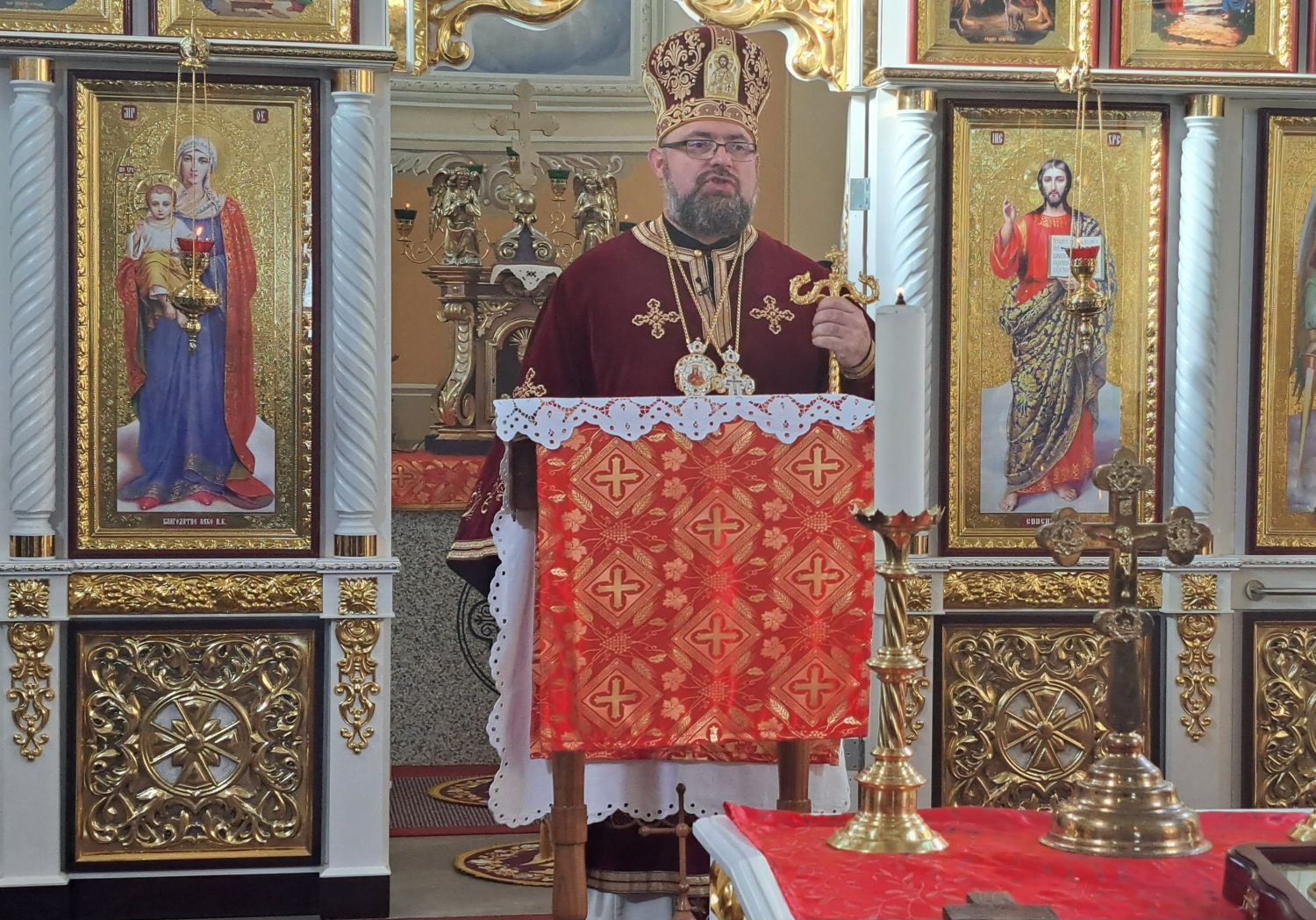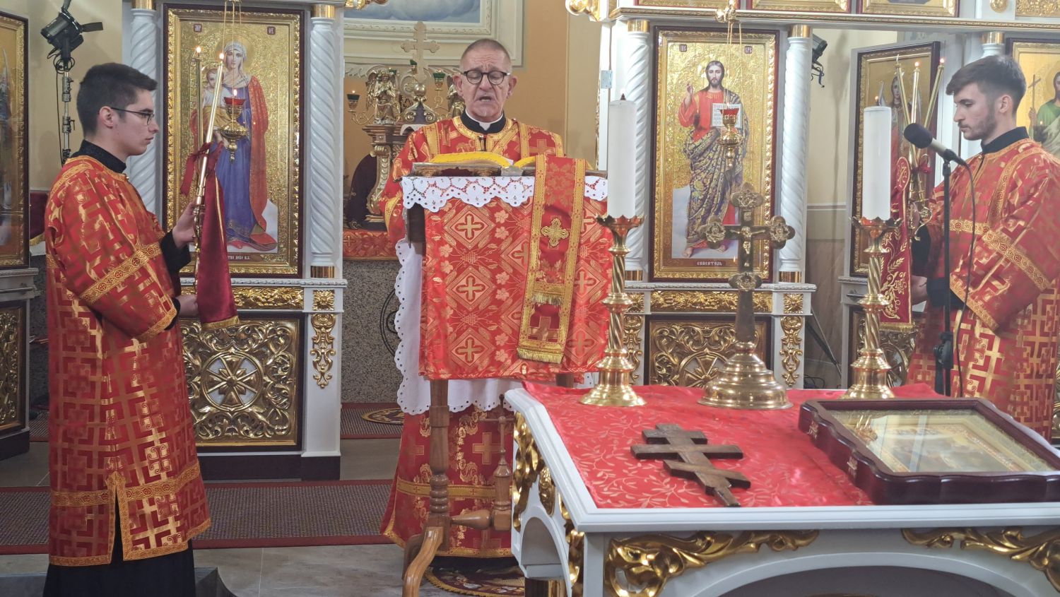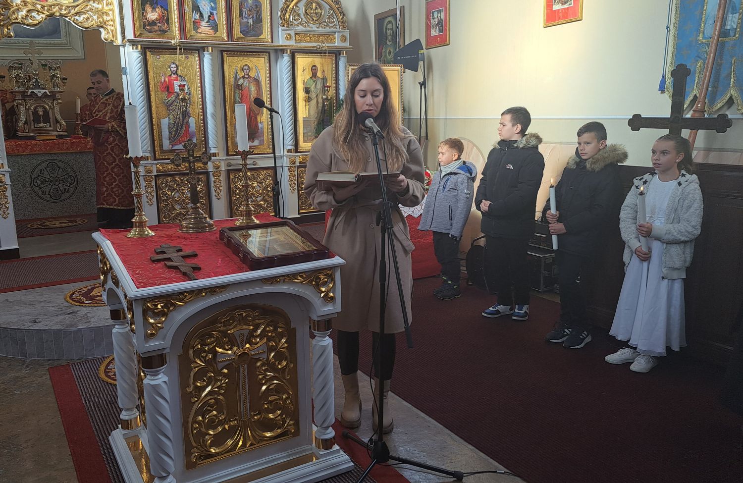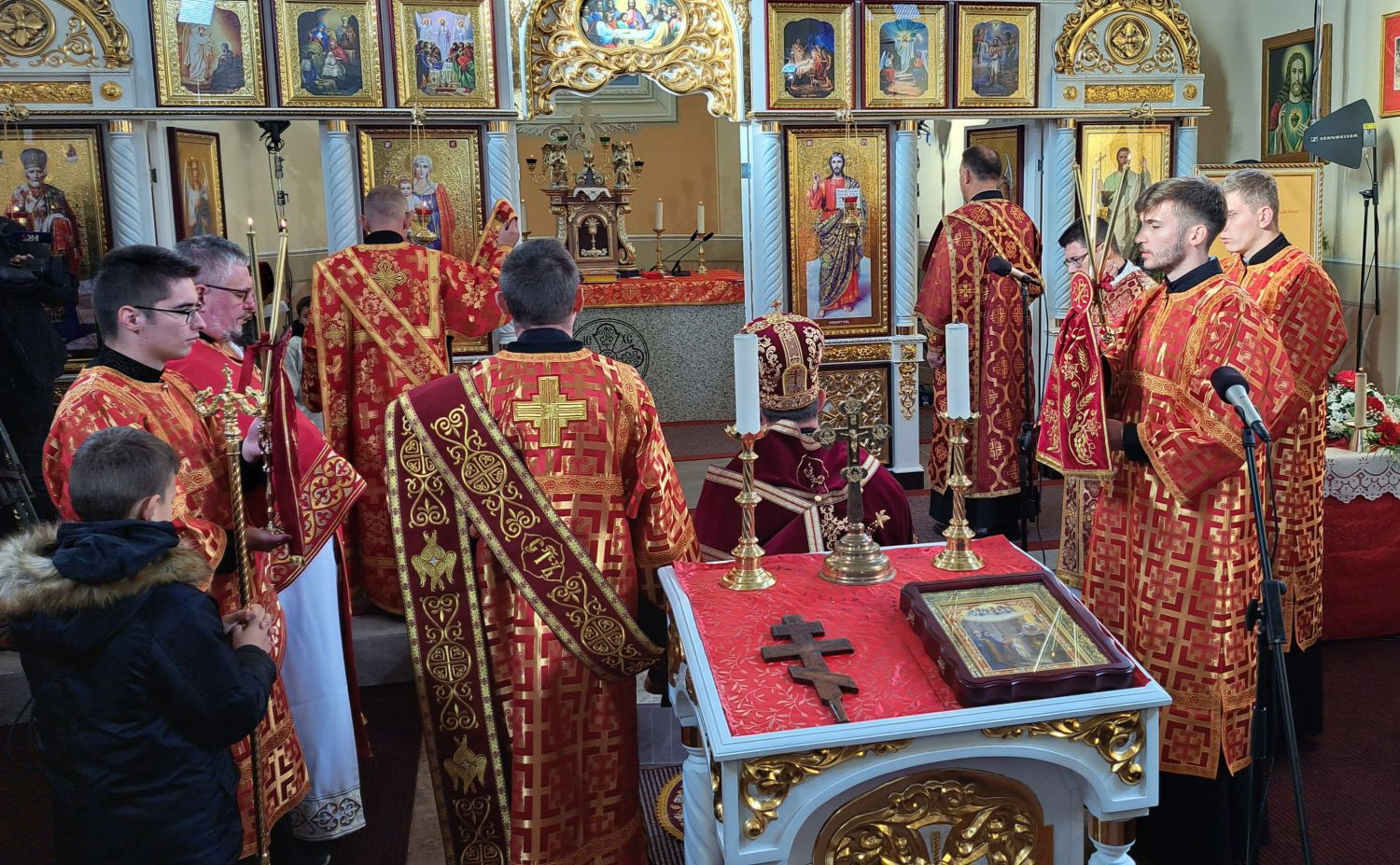 Svečanu liturgiju predvodio je vladika križevački Milan Stipić. Uz njega su za oltarom bili župnik župe Kaniža i upravitelj župe Šumeće o. Andriy Luchyn, slavonskobrodski župnik o. Aleksandar Hmilj, župnik župe Metlika u Sloveniji o. Ivan Skalivskyi, o. Andriy Savyak iz Križevaca, o. Miroslav Barničko iz Ukrajine, te đakoni o. Antonije Pajić, o. Livio Marijan i o. Robert Čabraja. Uz domaće župljane, pjevali su i ukrajinski bogoslovi iz Papinskog Zavoda svetog Jozafata iz Rima.