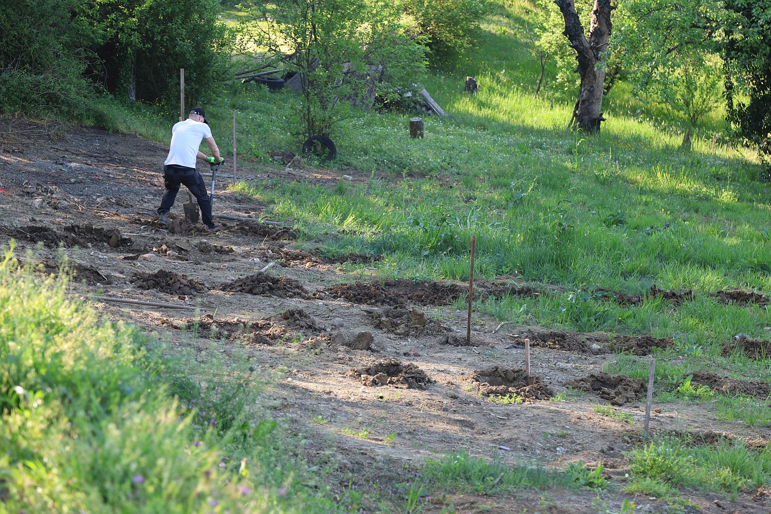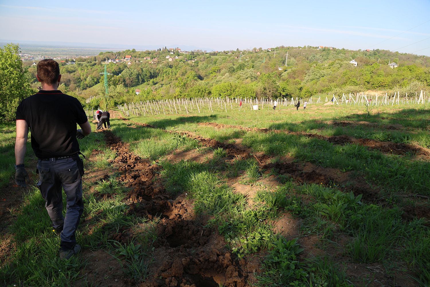 - Proces sadnje zahtijeva temeljitu pripremu koja počinje već godinu ranije. Parcelu najprije čistimo od šikare, zatim više puta obrađujemo, a tijekom zime uklanjamo preostalo korijenje i iskopavamo rupe za sadnju. Sam postupak sadnje počinje dan ranije namakanjem loze u vodi sa stajskim gnojivom. Prije sadnje korijen se skraćuje, a potom se sadnica polaže u zemlju, prekriva slojem zemljekoji se sabija kako bi se uklonio zrak i dodajemo na to stajsko organsko gnojivo - objasnio je Josip postupak sadnje vinove loze.