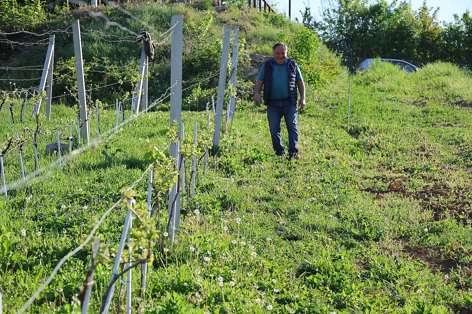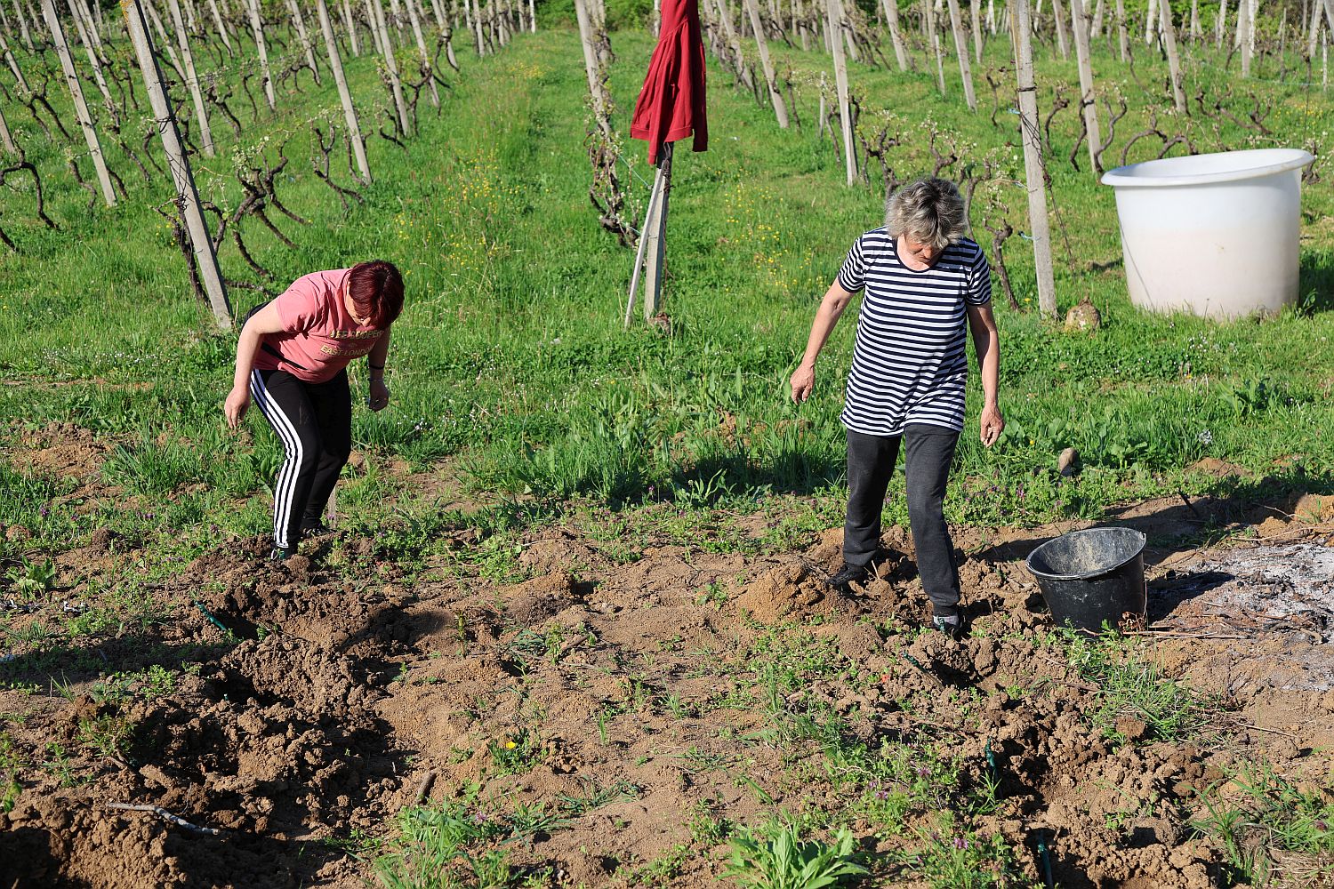 Daljnja njega sadnica ovisi o vremenskim uvjetima, a posebna pažnja posvećuje se održavanju vlage u tlu na dubini od oko 40 centimetara. Ipak, najveći izazov ostaje – trava. Borba s njom, kaže Josip, traje generacijama. - Moj pokojni djed Josip cijeli je vinograd obrađivao ručno. Danas je vinograd znatno veći pa to više nije moguće u potpunosti, ali trudimo se barem mlade nasade održavati na isti način - govori Josip.