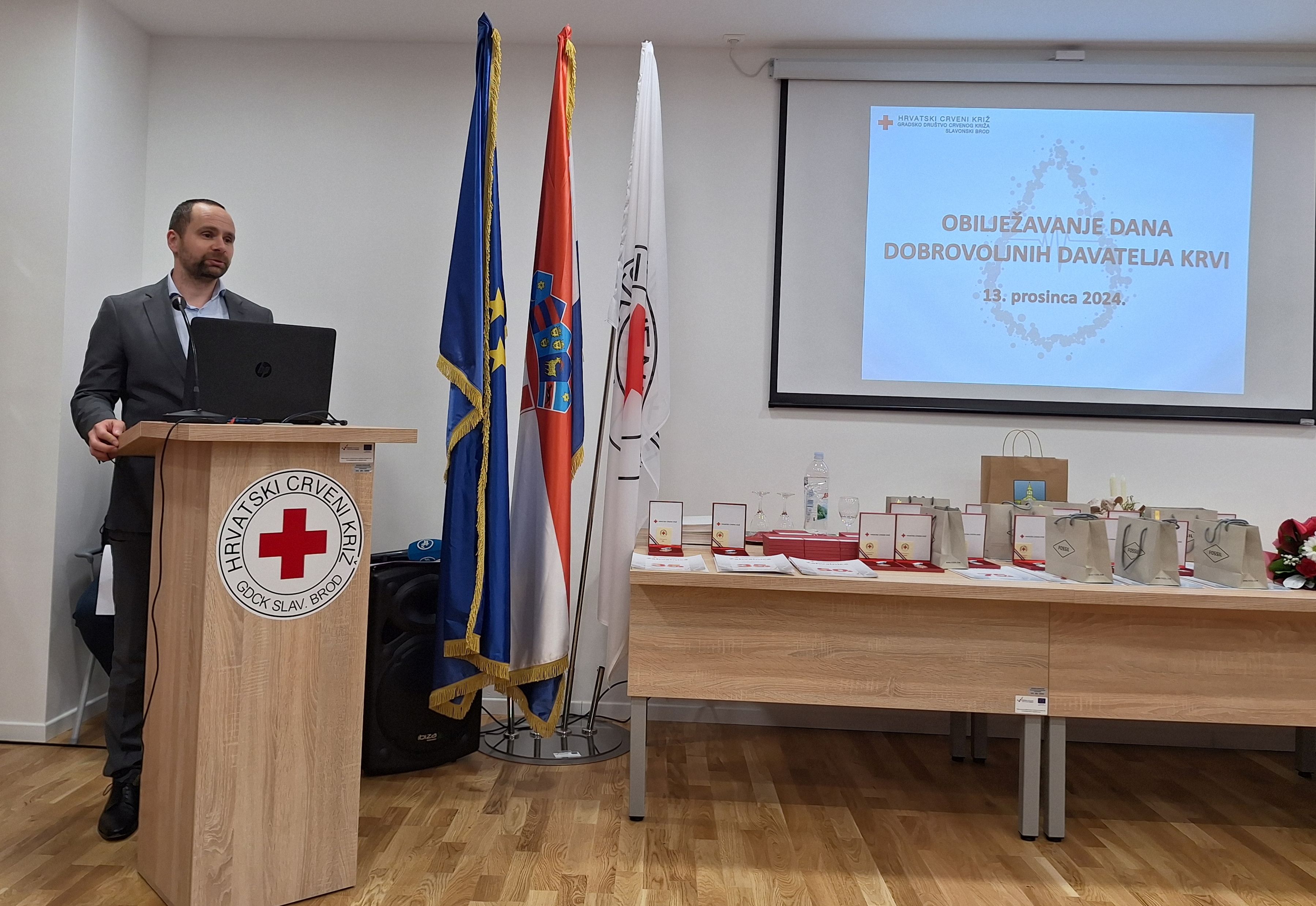 "Na razini cijele Hrvatske godišnje se prikupi oko 200.000 doza krvi. I unatoč svim negativim demografskim trendovima, iseljavanju, starenju stanovništva, u Hrvatskoj dobrovoljno davalaštvo krvi i dalje raste. Hrvatska je i dalje primjer svjetskim velesilama, samodostatna opskrbom spasonosnom tekućinom života za svakoga u svakom trenutku. Sve zahvaljujući darivateljima krvi. Svjetska je zdravstvena organizacija 1999. godine dobrovoljno darivanje krvi proglasila herojskim činom. Vi ste heroji! Hvala vam na tome!" - istaknuo je prim. dr. Josip Jelić, predsjednik Hrvatskog crvenog križa, te onima koji su do sada darovali po 45 litara krvi uručio zahvalnice HCK sa zlatnim znakom. To su Darko Drkulec, Borislav Kovačević, Goran Matanović i Marijan Grgurević.