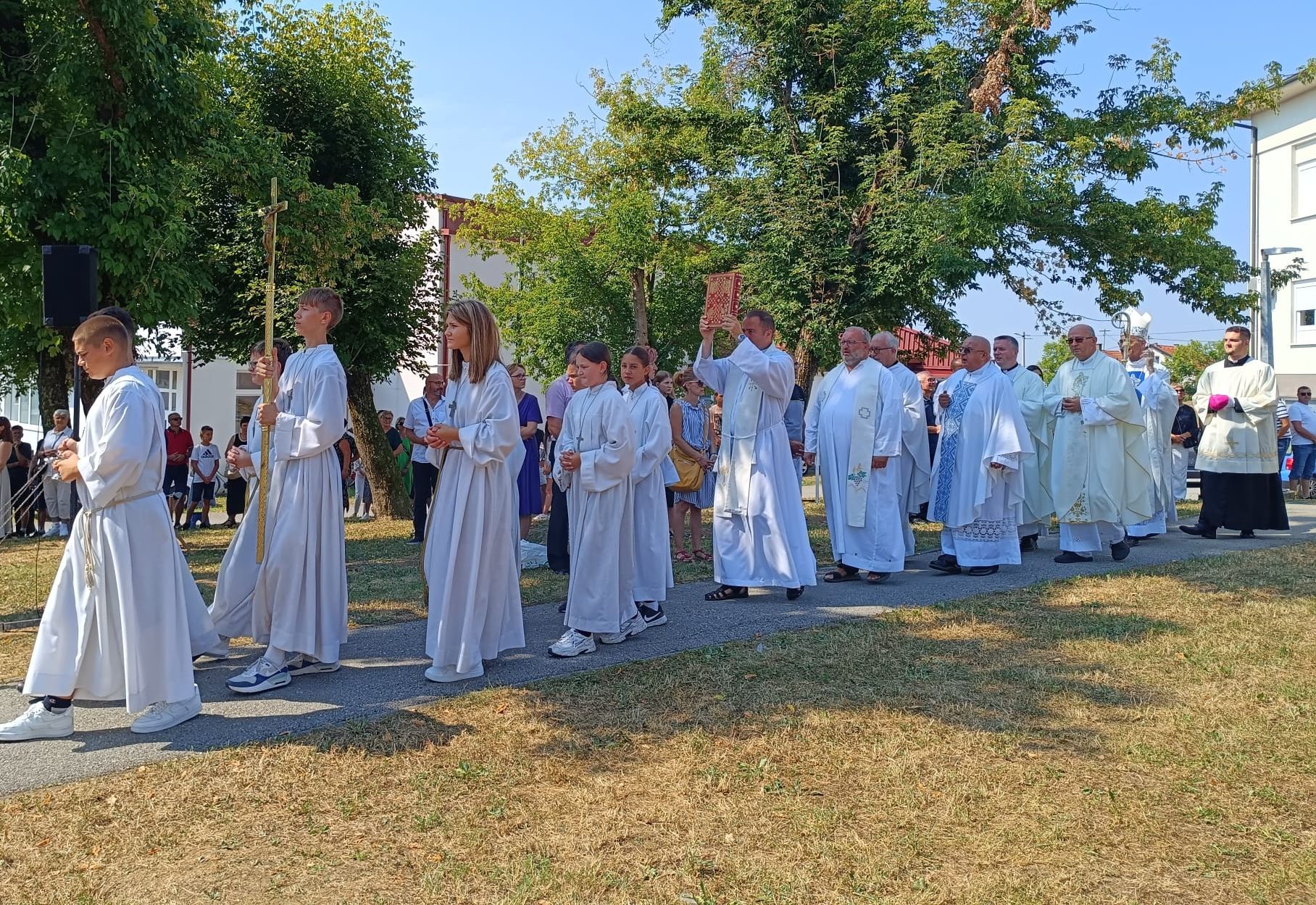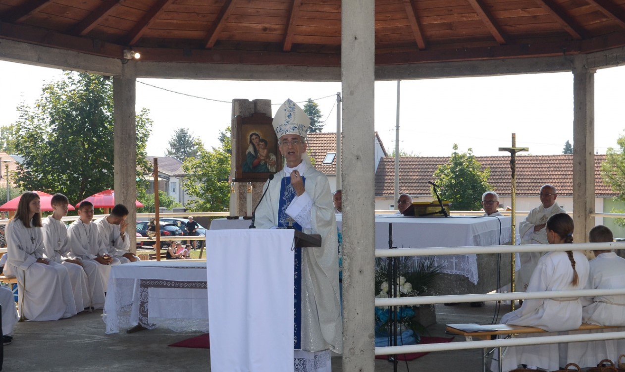 „U Marijinu uznesenju mi slavimo Božje spasenja. U Bogorodici Mariji častimo ‘prvospašenu’ – onu u čijem životu na najizvrsniji način otkrivamo uzajamno sudjelovanje i zajedništvo Boga i čovjeka. Kad Marija zanosno Bogu pjeva svoj ‘Veliča’, to je priznanje i očitovanje vjere kojom ona u svakom trenutku prepoznaje i čita prisutnost Božjeg vodstva i njegove providnosti koja prati i vodi svaki ljudski život. To je put koji u nama želi podržavati zajednica Crkve, na poseban način u župnim zajednicama“, rekao je u prigodnoj propovijedi biskup Ćurić.