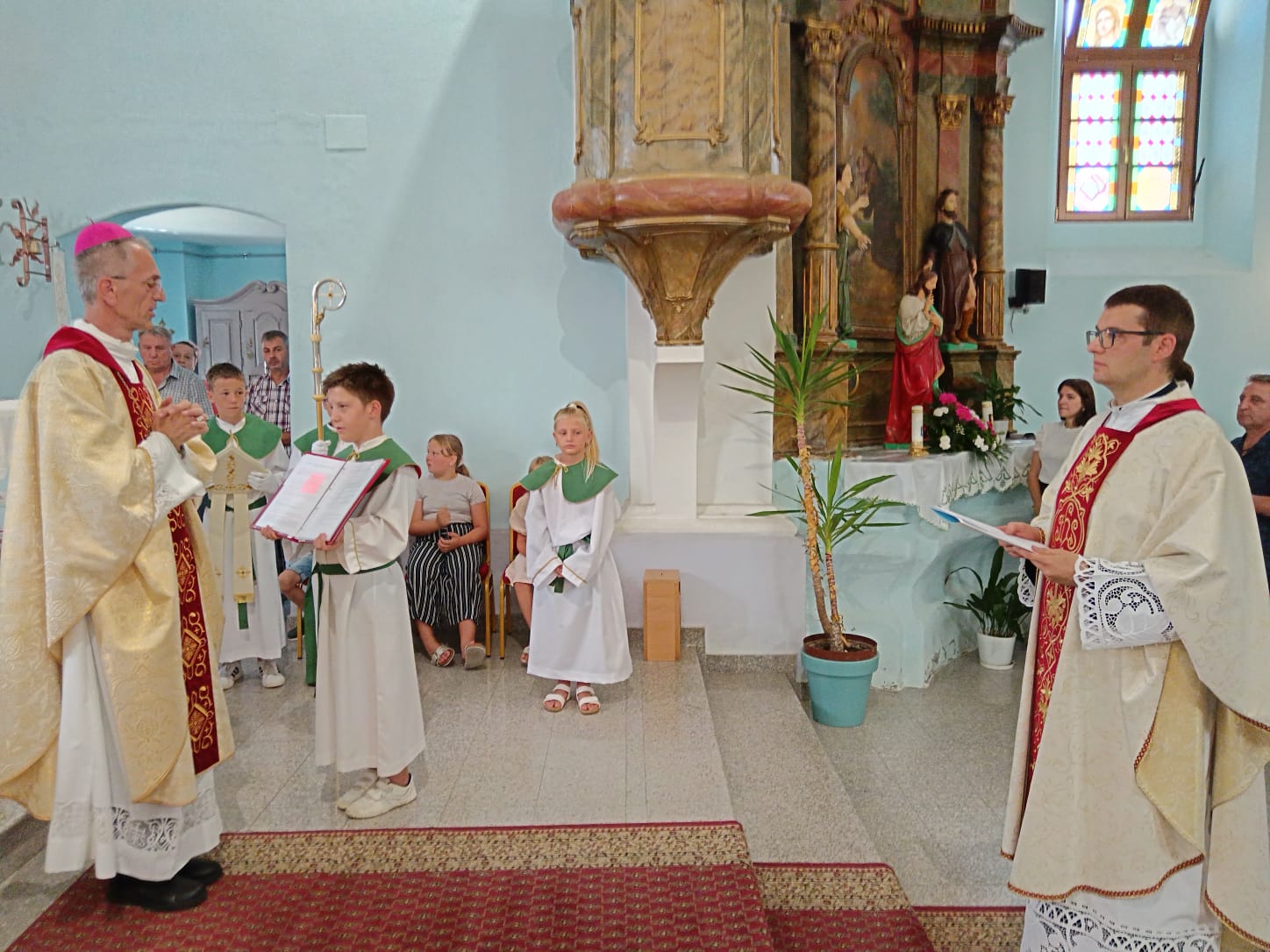 Nakon svečane procesije biskup Ivan predstavio je novoimenovanog župnika, a vjeroučiteljica Marina Špehar pročitala je vjerničkoj zajednici dekret imenovanja, nakon čega je vlč. Martić pred biskupom obnovio svećenička obećanja. Predstavnik župne zajednice Anto Jurić predao je novom župniku ključeve župne crkve, a župnik Marko je potom blagoslovnom vodom poškropio sve okupljene vjernike.