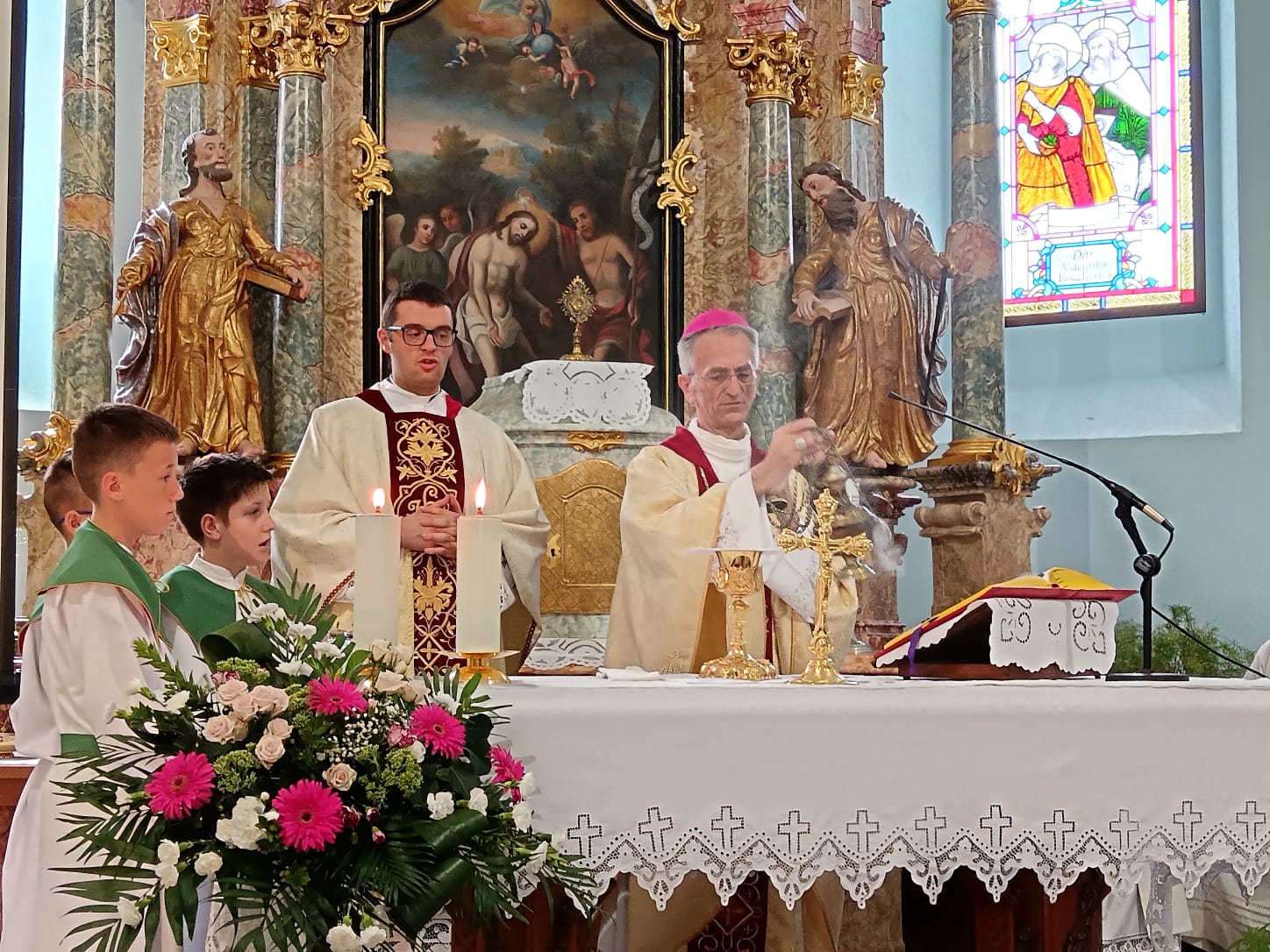 Liturgijski obred uvođenja u župničku službu i svečano euharistijsko slavlje predslavio je đakovačko – osječki pomoćni biskup mons. Ivan Ćurić, a suslavili su odvorački župnik vlč. Josip Kalmar te župnik hrvatske katoličke župe sv. Pavla iz Clevelanda vlč. Zvonko Blaško.